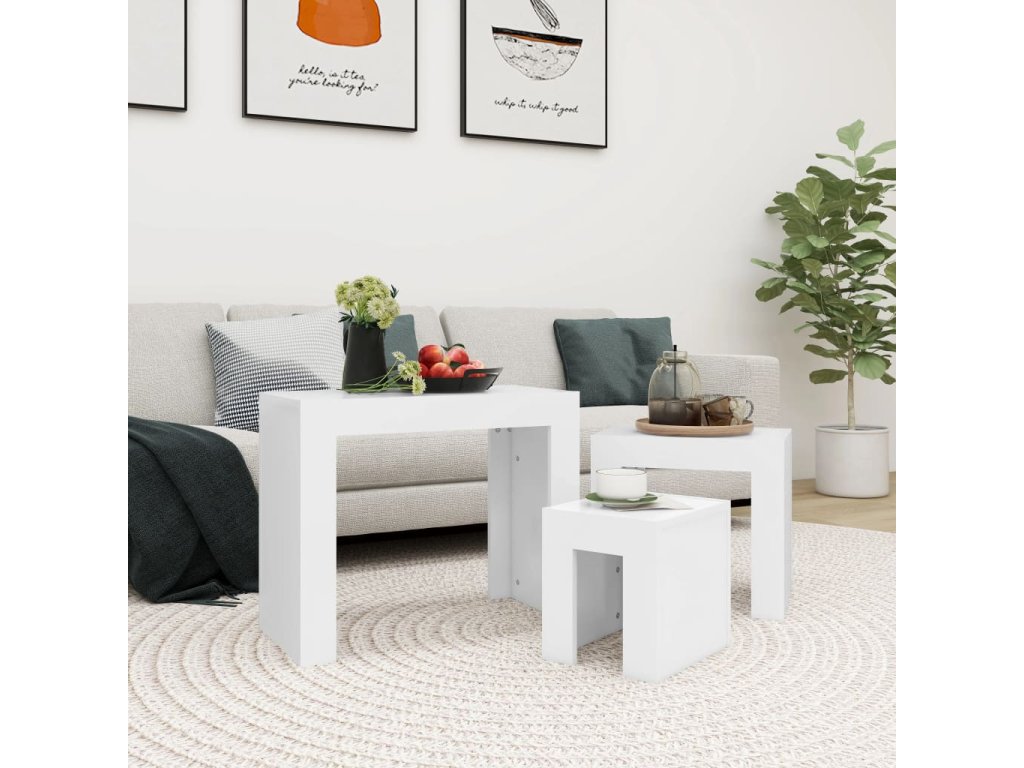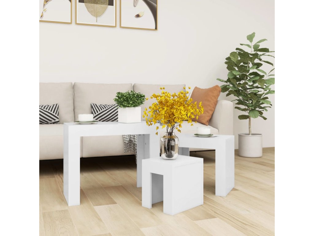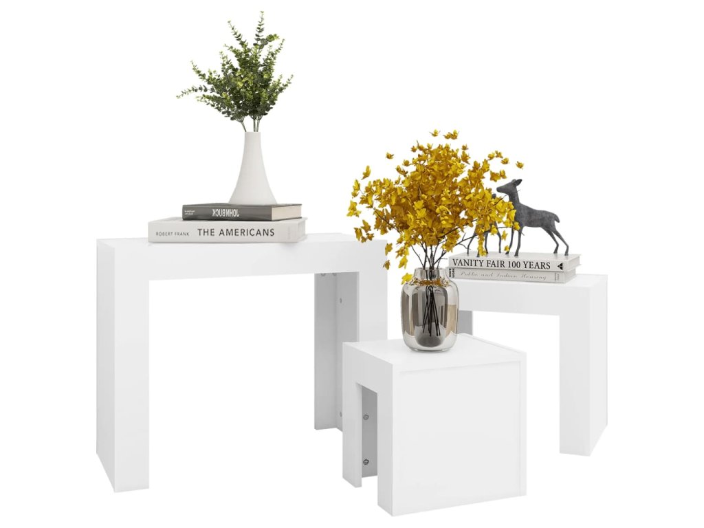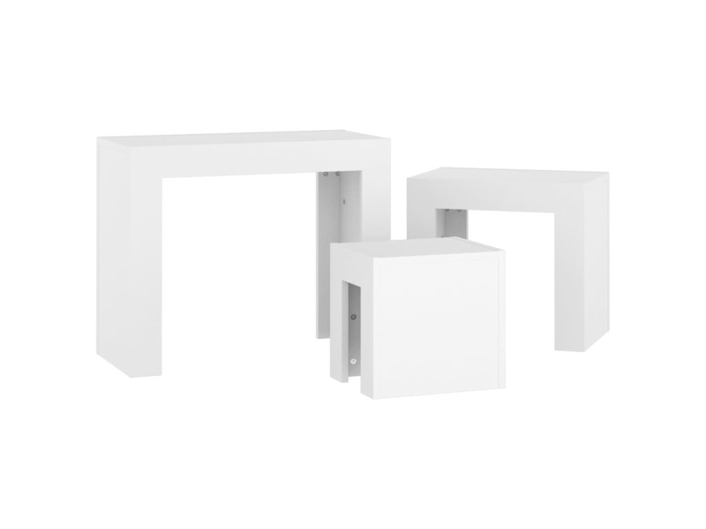 vidaXL Zasúvacie konferenčné stolíky 3 ks, biele, kompozitné drevo