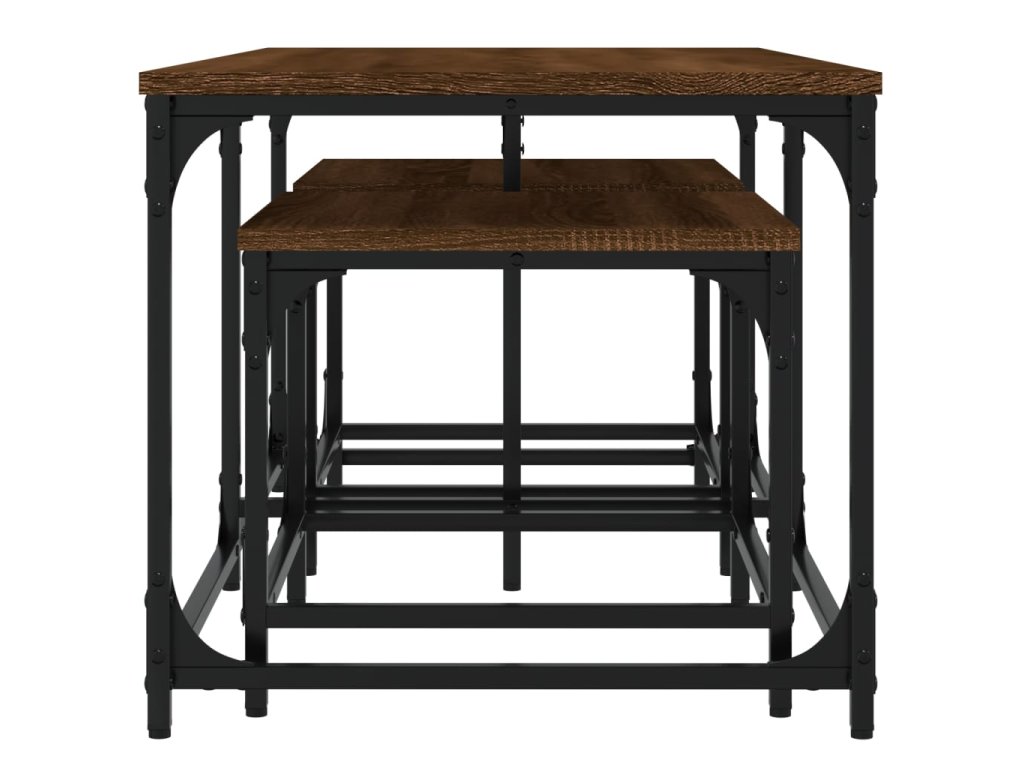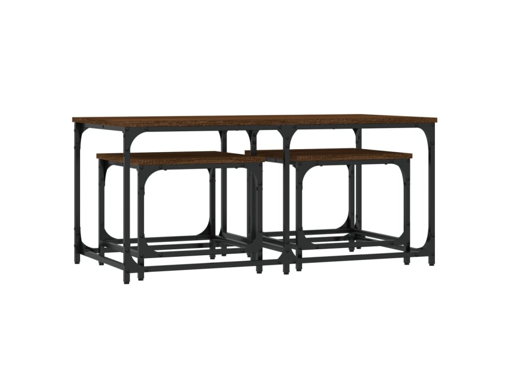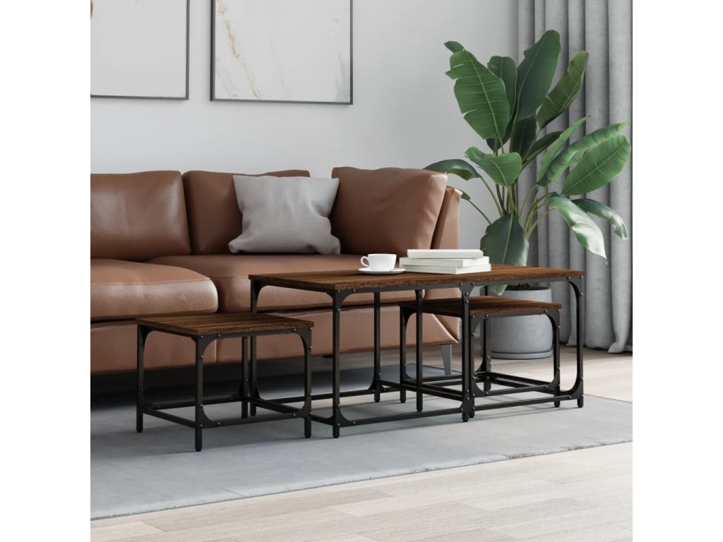 vidaXL Zasúvacie konferenčné stolíky 3 ks hnedý dub kompozitné drevo