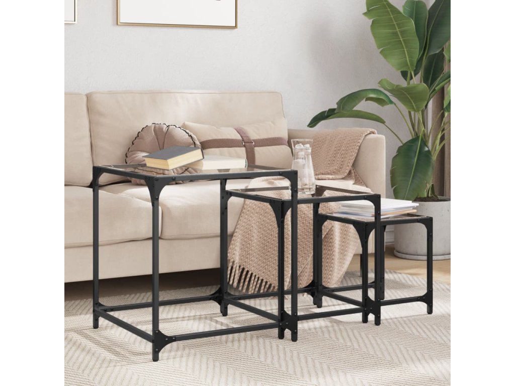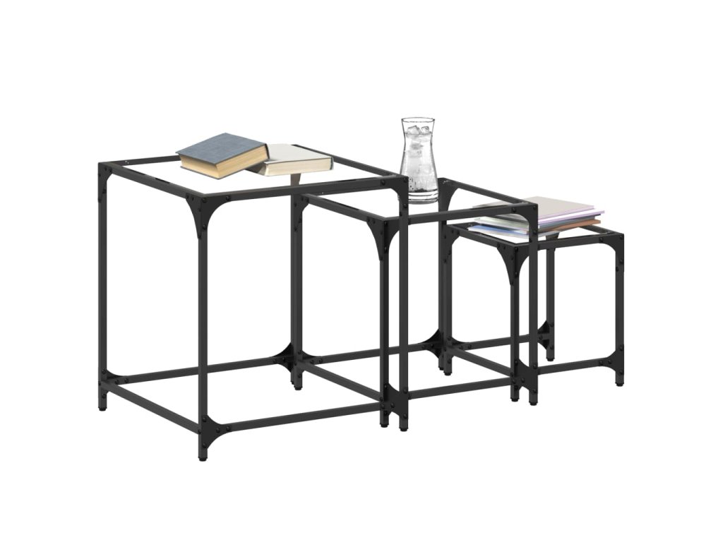 vidaXL Zasúvacie konferenčné stolíky 3 ks s priehľadným sklom oceľ