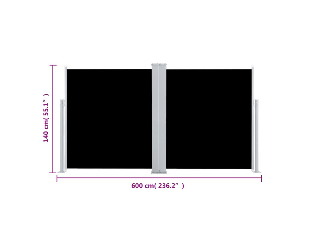 vidaXL Zaťahovacia bočná markíza, čierna 140x600 cm