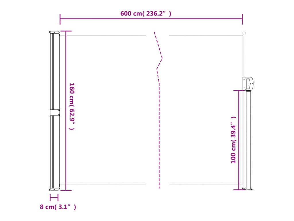 vidaXL Zaťahovacia bočná markíza hnedá 160x600 cm