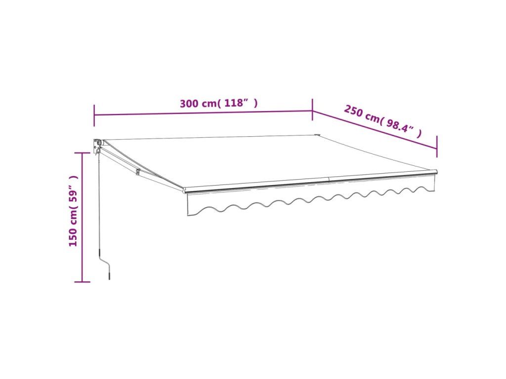 - Odolný materiál: Rám markízy je vyrobený z hliníka s práškovým nástrekom, ktorý je robustný a odolný. Látka s PU povrchovou úpravou je UV odolná. Vašu rodinu alebo hostí ochráni pred UV lúčmi a oslňujúcim slnečným žiarením.