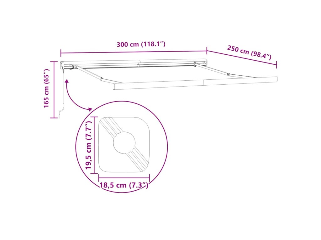 - Odolný materiál: Rám markízy je vyrobený z hliníka s práškovým nástrekom, ktorý je robustný a odolný. Látka s PU povrchovou úpravou je UV odolná. Vašu rodinu alebo hostí ochráni pred UV lúčmi a oslňujúcim slnečným žiarením.