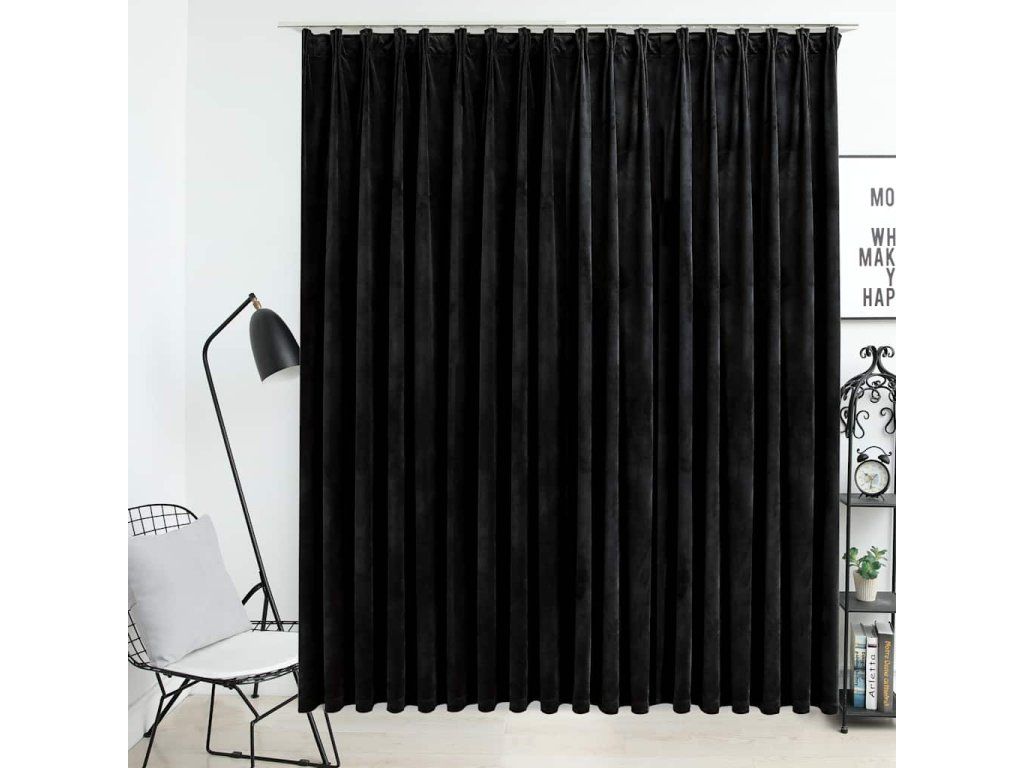 vidaXL Zatemňovací záves s háčikmi, zamat, čierny 290x245 cm