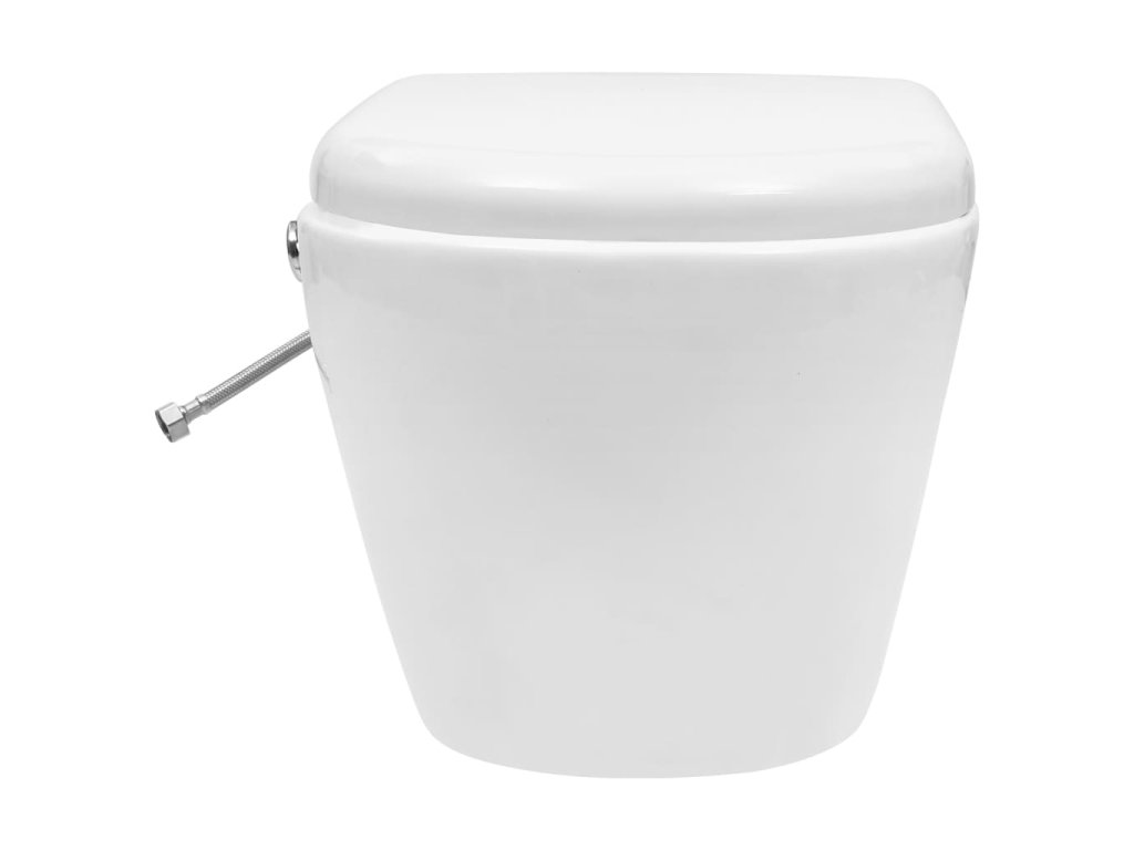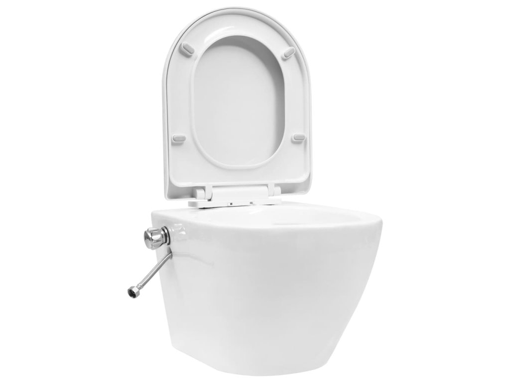 vidaXL Závesné bezokrajové WC s funkciou bidetu biele keramické