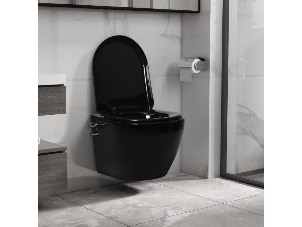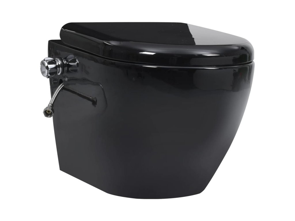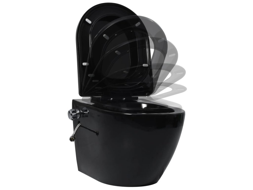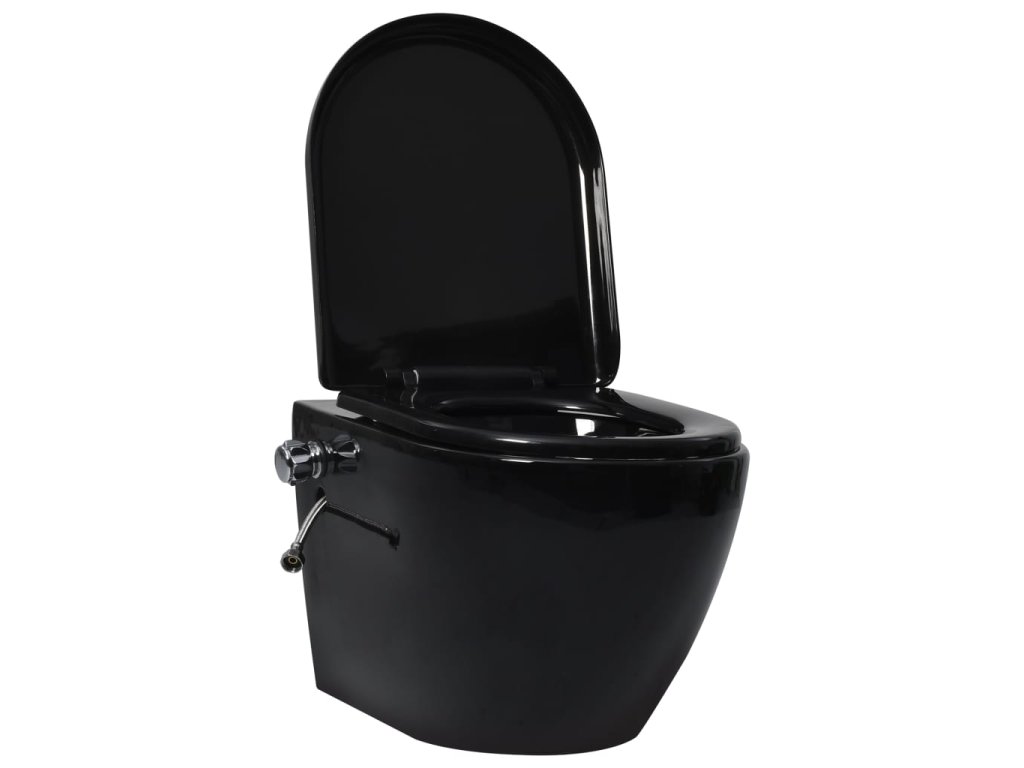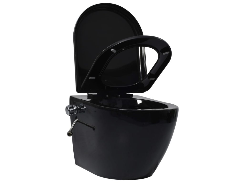 vidaXL Závesné bezokrajové WC s funkciou bidetu čierne keramické