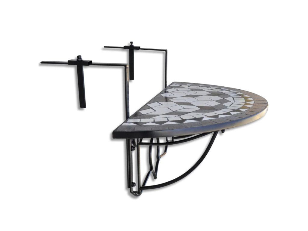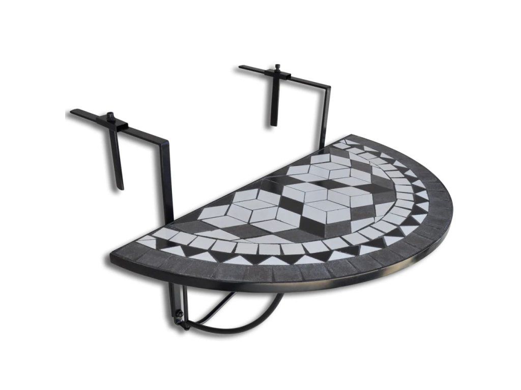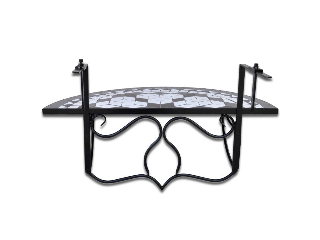 vidaXL Závesný stolík na balkón, čierno biely, mozaikový