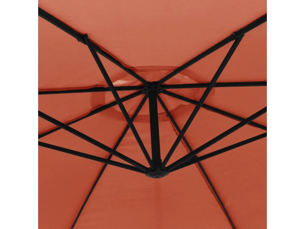 Slnečník je vyrobený z polyesteru, ktorý nevybledne a je odolný voči UV žiareniu, vďaka čomu vám poskytne optimálnu ochranu pred slnkom a ľahko sa čistí. Je vybavený pevným podstavcom v tvare kríža pre lepšiu stabilitu. Exkluzívny dizajn vám umožní slnečník podľa potreby nakloniť, aby zatienil aj zapadajúce slnko. Pevná kovová tyč spolu s 8 trvácnymi rebrami zabezpečujú výbornú stabilitu a dlhú životnosť slnečníka. Tento záhradný slnečník sa dá jednoducho otvárať a zatvárať pomocou kľukového mechanizmu. Výrobok sa jednoducho montuje.