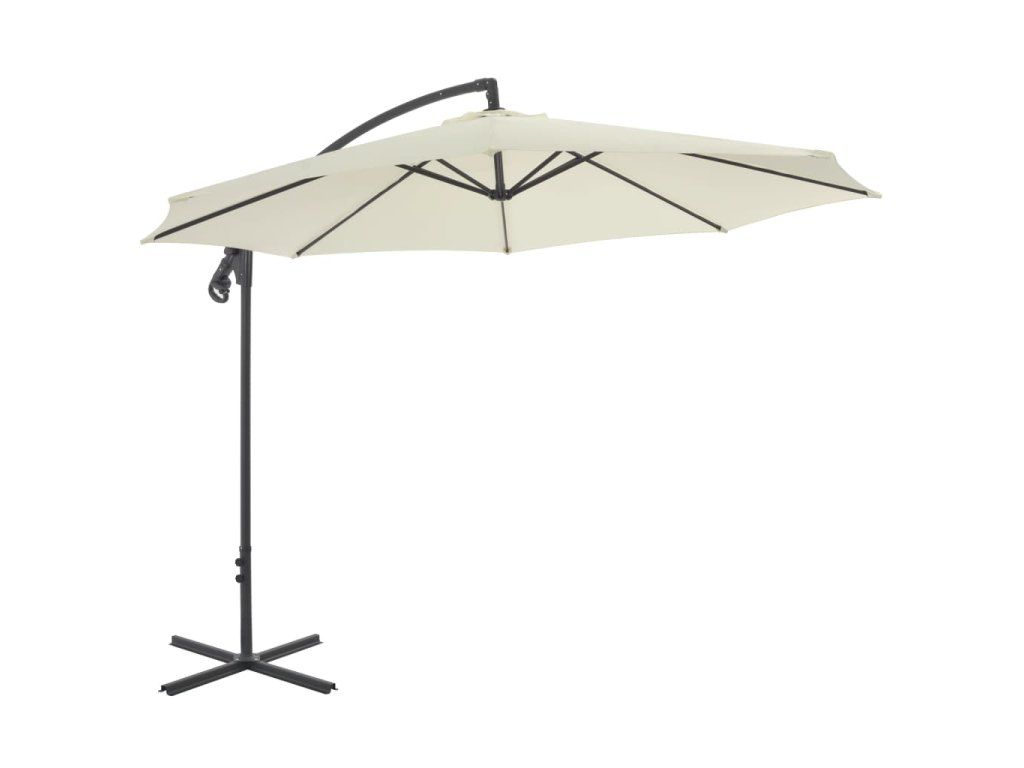 vidaXL Závesný záhradný slnečník, oceľová tyč 300 cm, pieskový