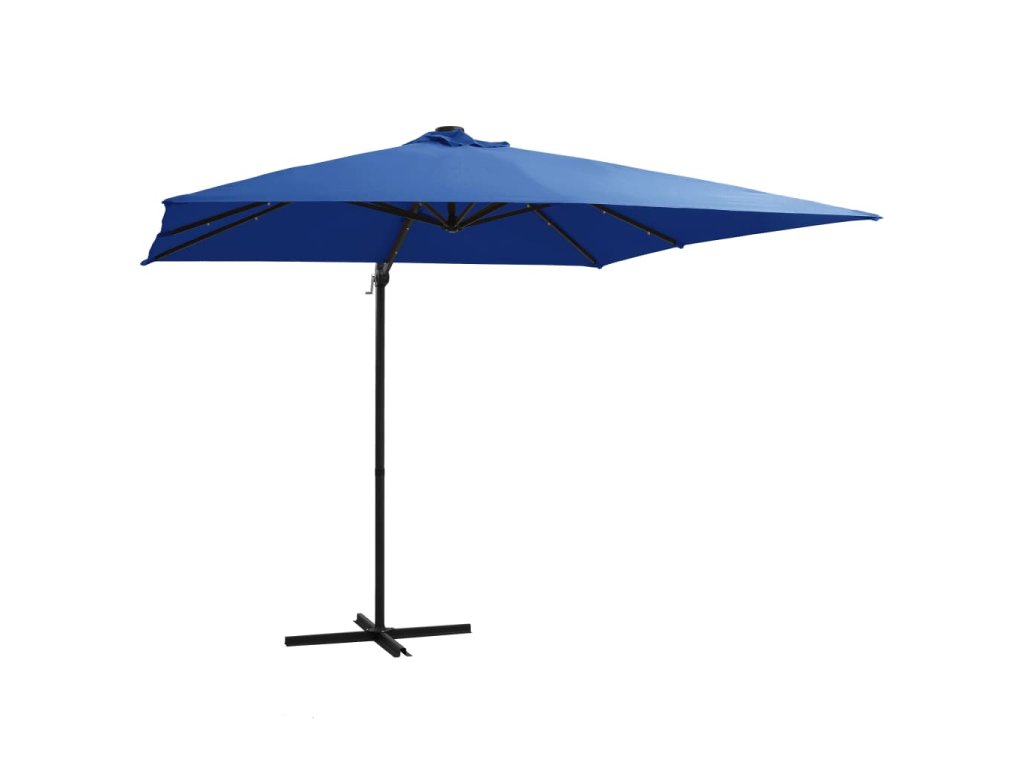 vidaXL Závesný záhradný slnečník+LED, oceľová tyč 250x250 cm, azúrový