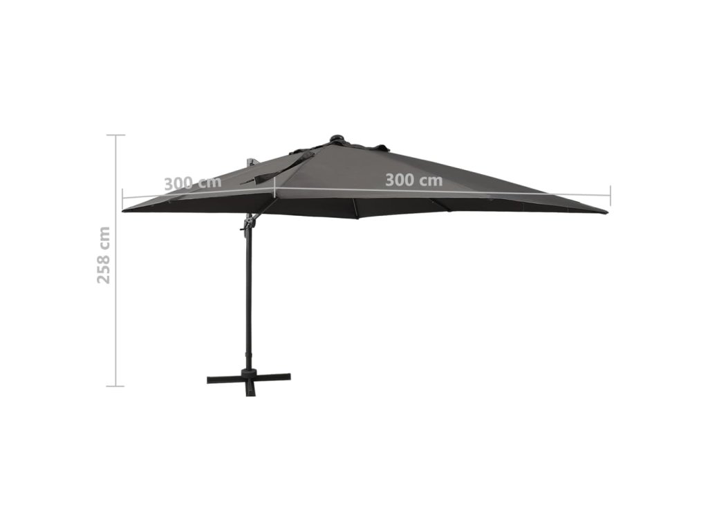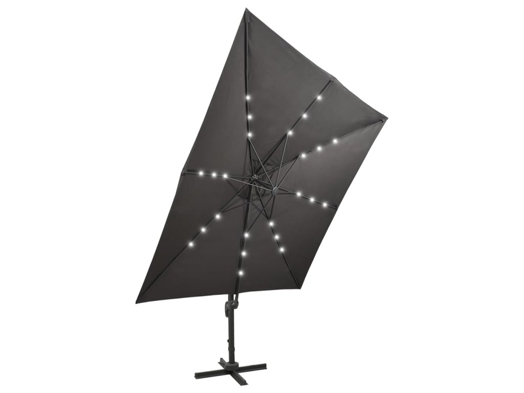 Tento elegantný závesný záhradný slnečník s LED osvetlením predstavuje skvelý spôsob, ako si vytvoriť príjemné miesto v tieni, a poskytne vám ochranu pred škodlivými slnečnými UV lúčmi. LED diódy po zotmení vytvoria príjemné svetlo, ktoré presvetlí vaše vonkajšie priestory.