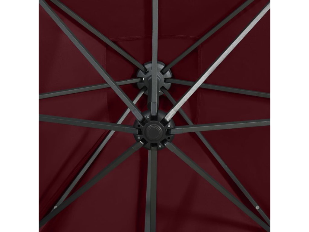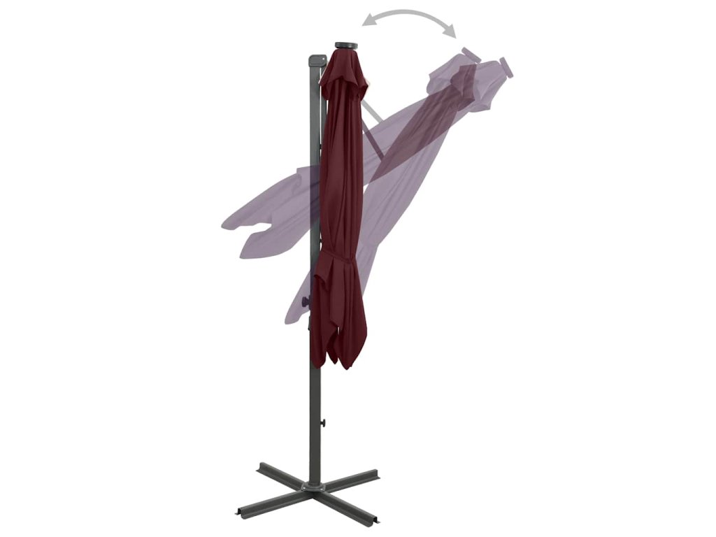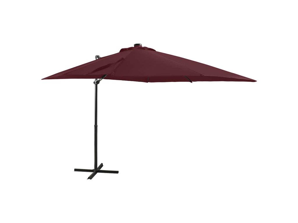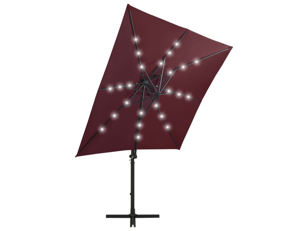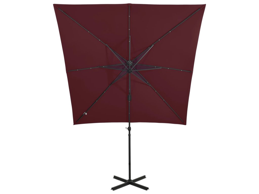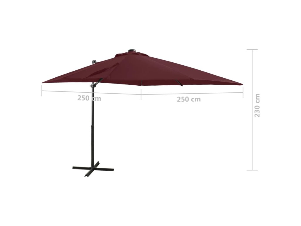 vidaXL Závesný záhradný slnečník s tyčou a LED, bordový 250 cm