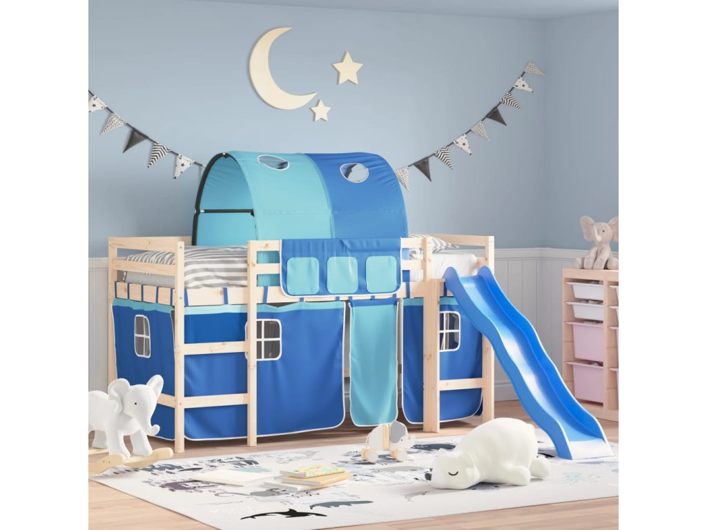 vidaXL Závesy pre poschodovú posteľ s tunelom modré polyester