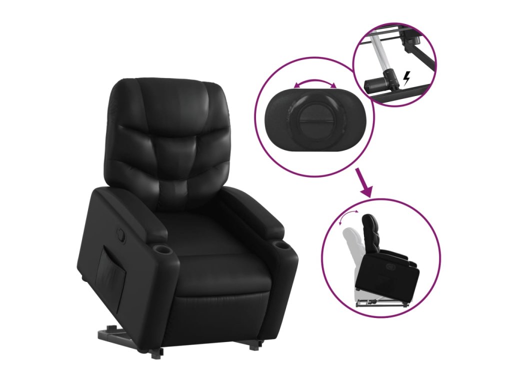 vidaXL Zdvíhacie a sklápacie kreslo čierne umelá koža