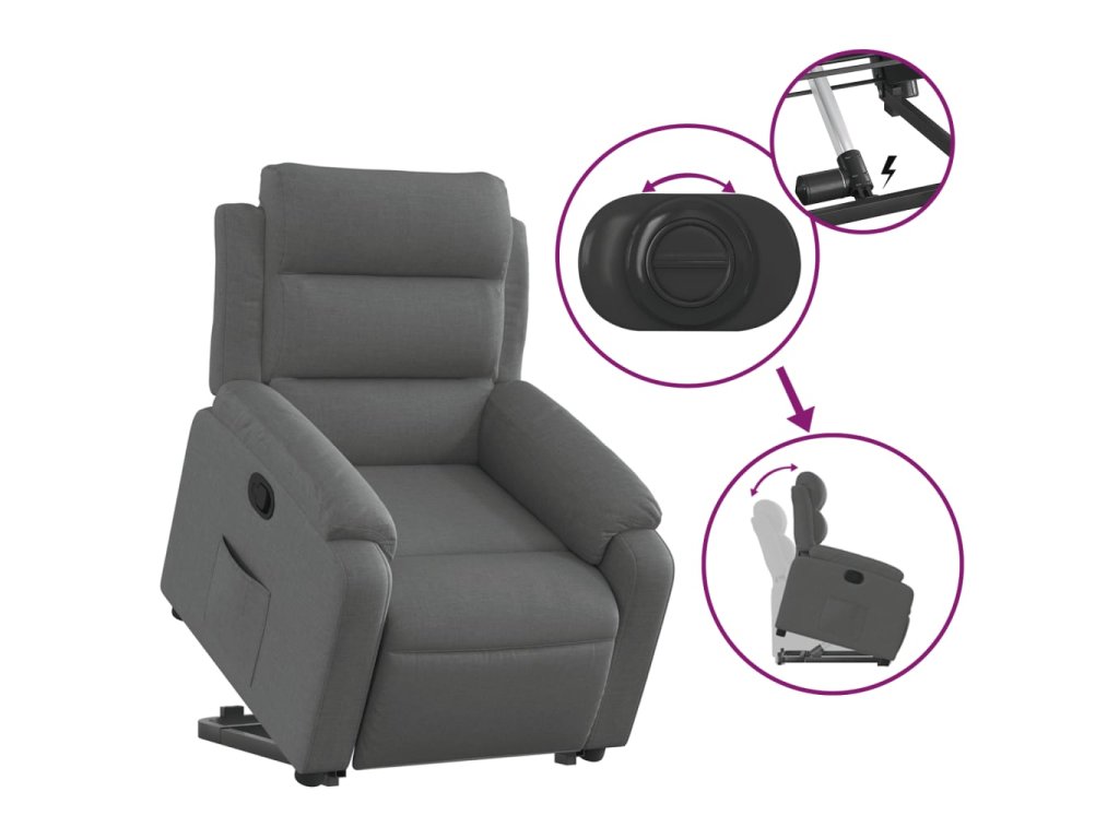 vidaXL Zdvíhacie a sklápacie kreslo tmavosivé látka