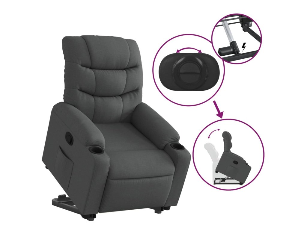 vidaXL Zdvíhacie a sklápacie kreslo tmavosivé látka