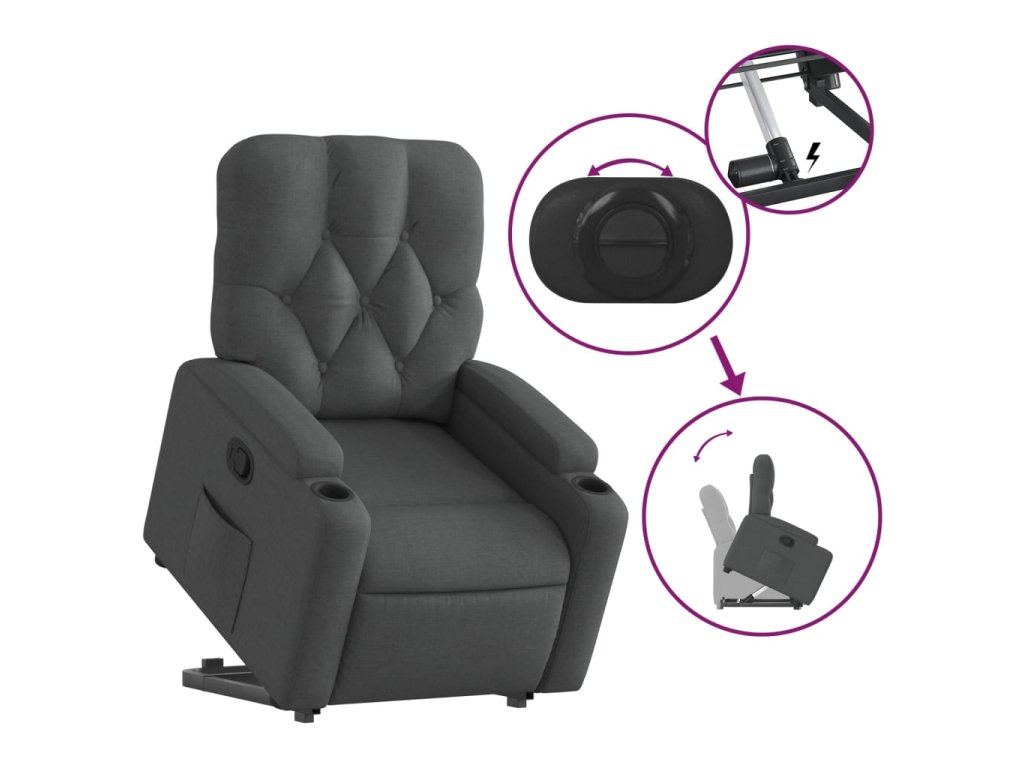 vidaXL Zdvíhacie a sklápacie kreslo tmavosivé látka