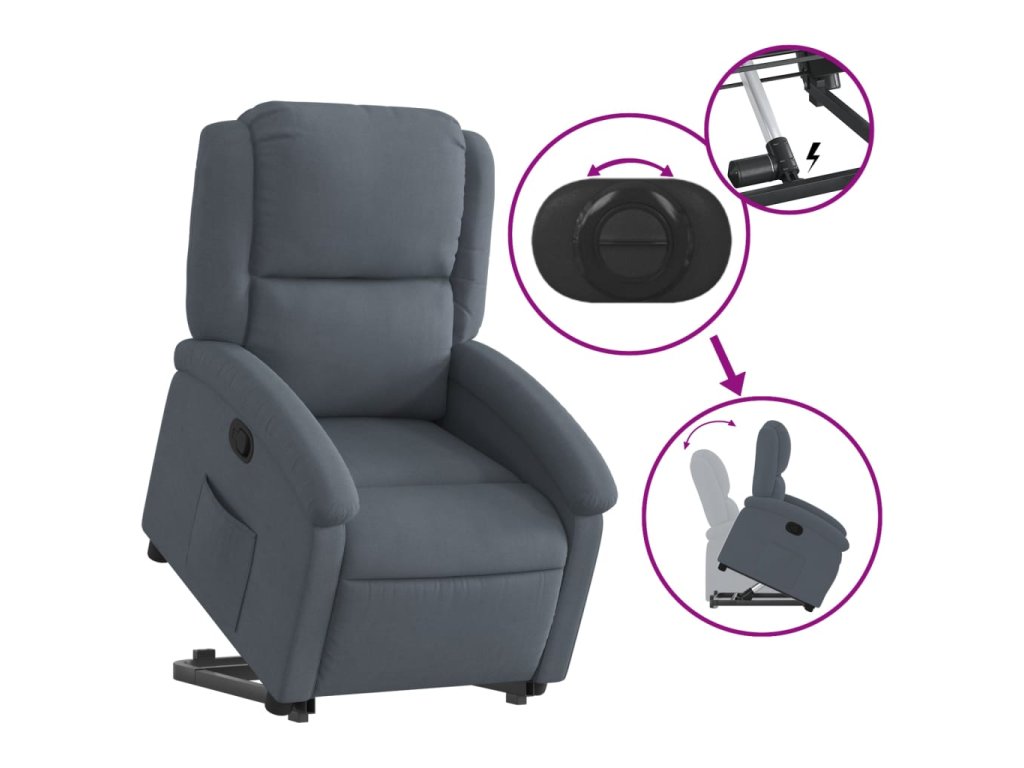 VidaXL Zdvíhacie a sklápacie kreslo tmavosivé zamatové