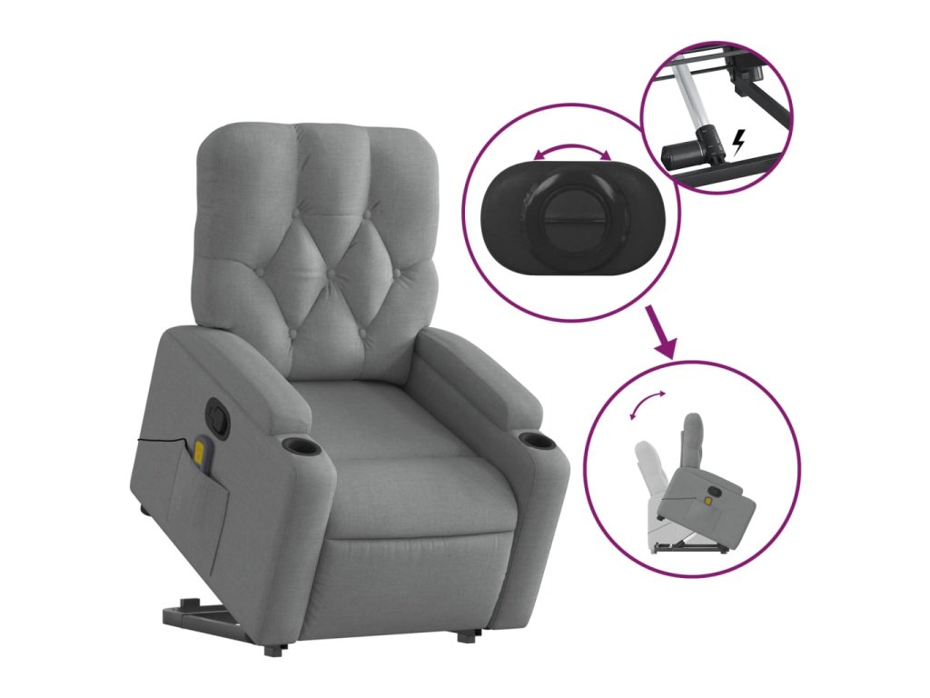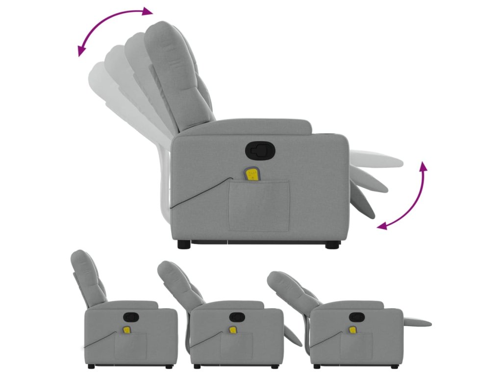 vidaXL Zdvíhacie a sklápacie masážne kreslo bledosivé látka