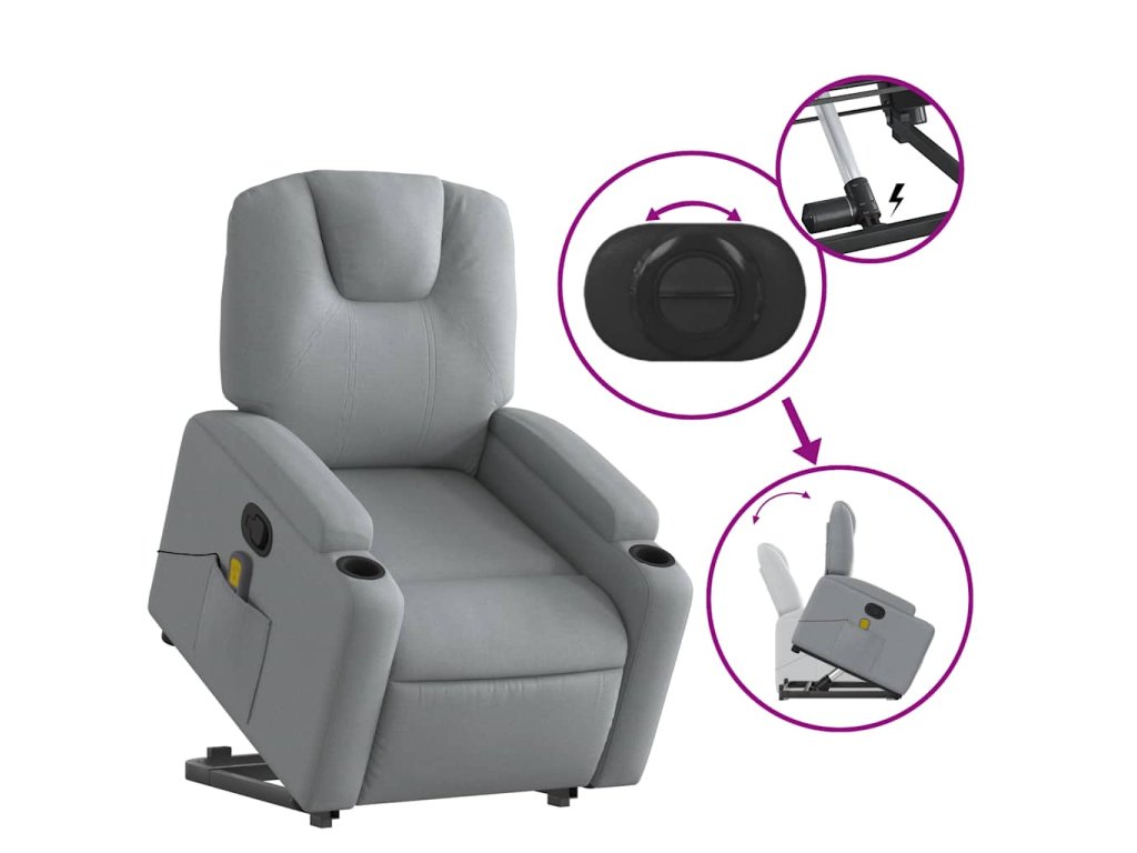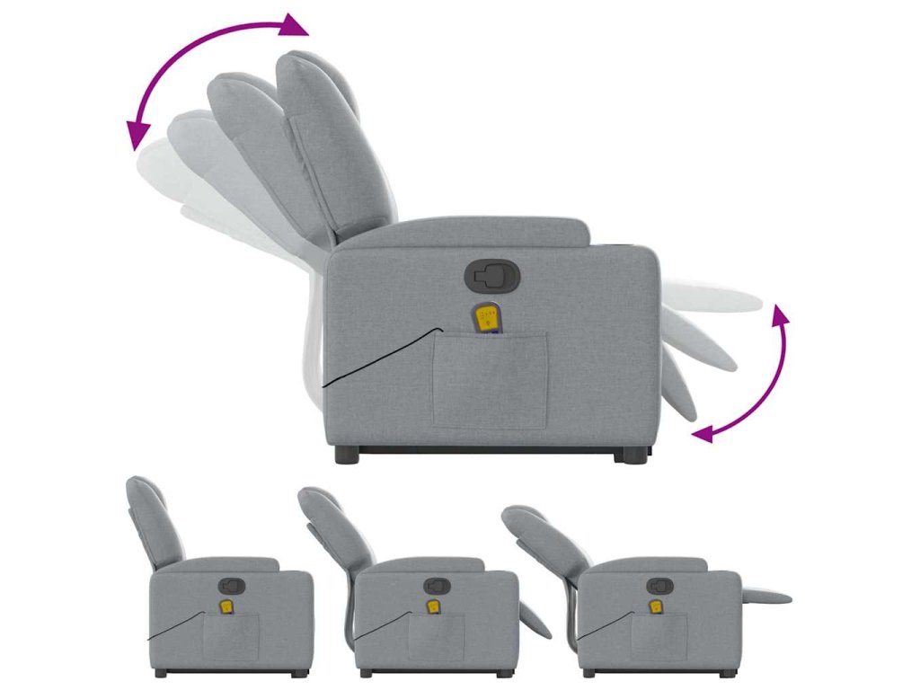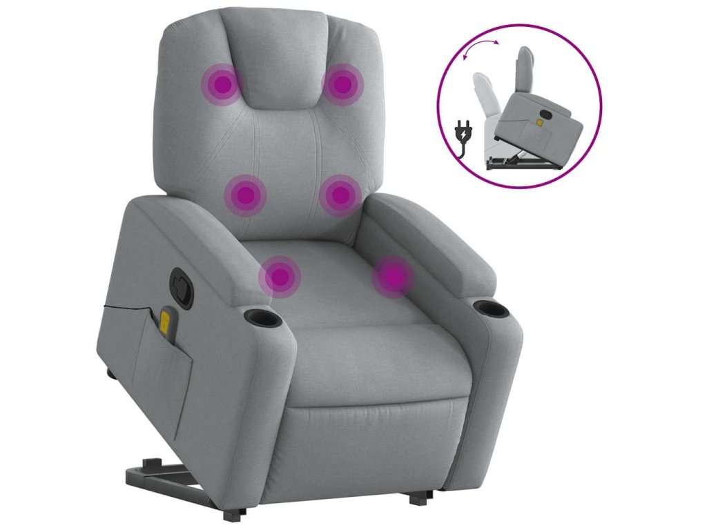 vidaXL Zdvíhacie a sklápacie masážne kreslo bledosivé látka