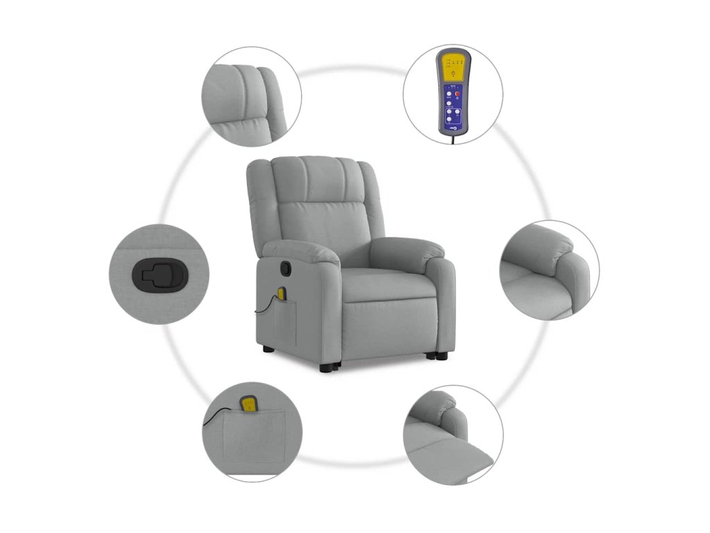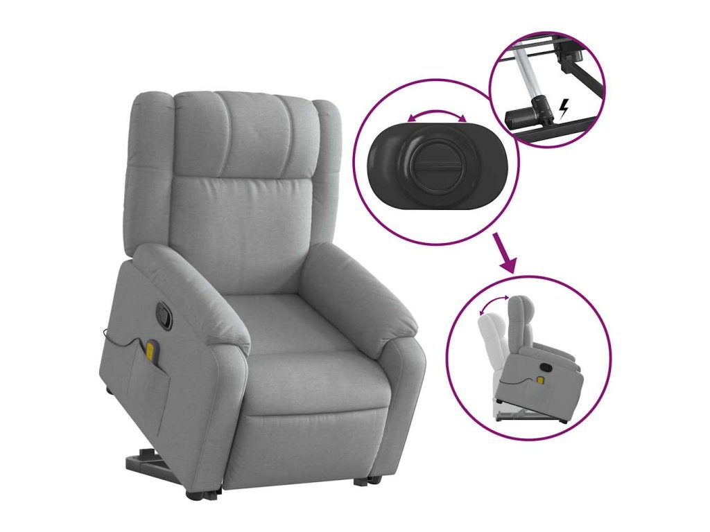 vidaXL Zdvíhacie a sklápacie masážne kreslo bledosivé látka