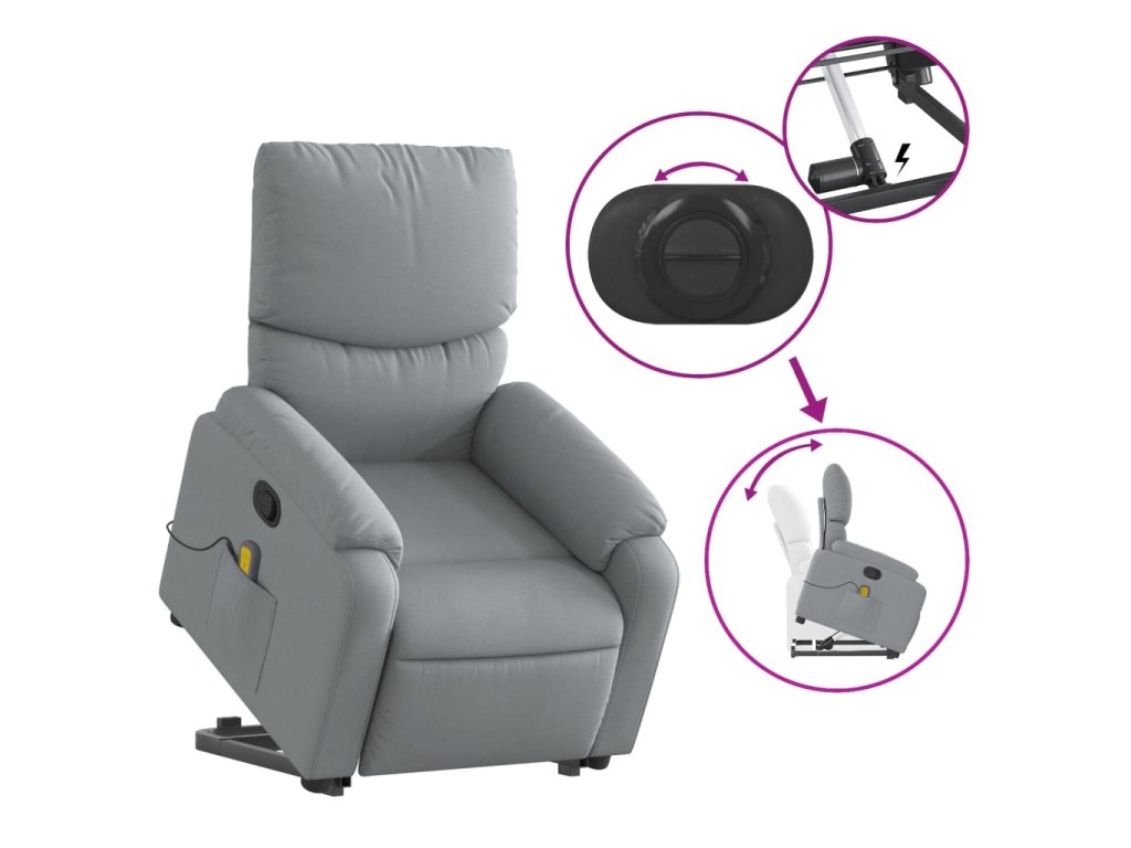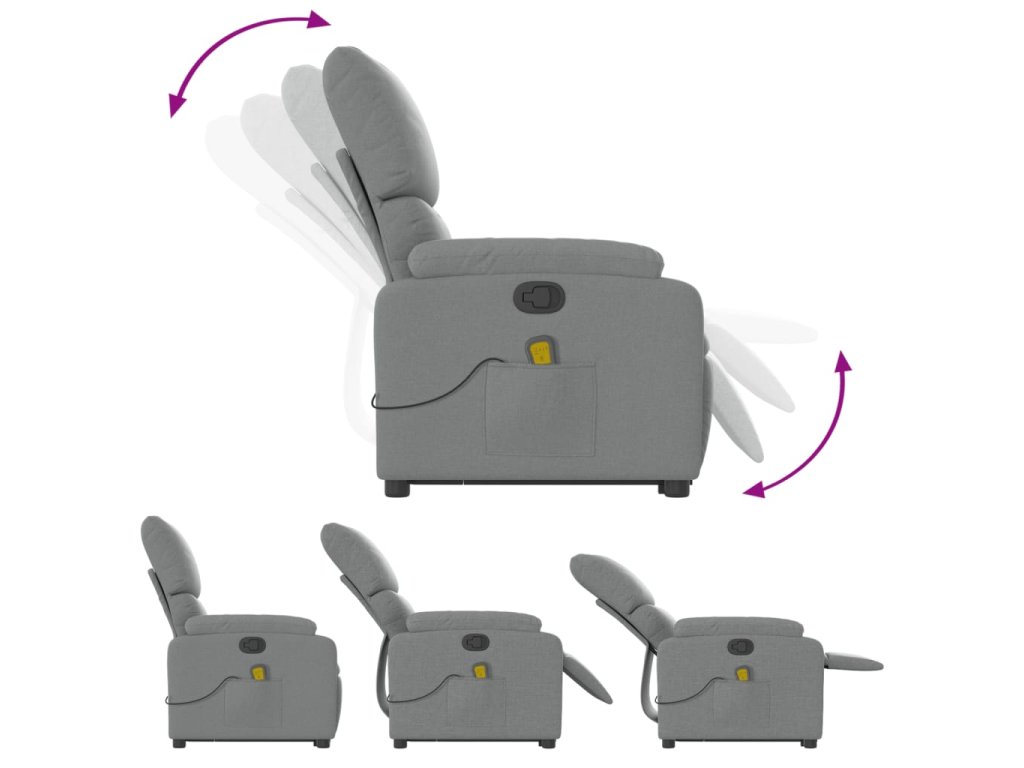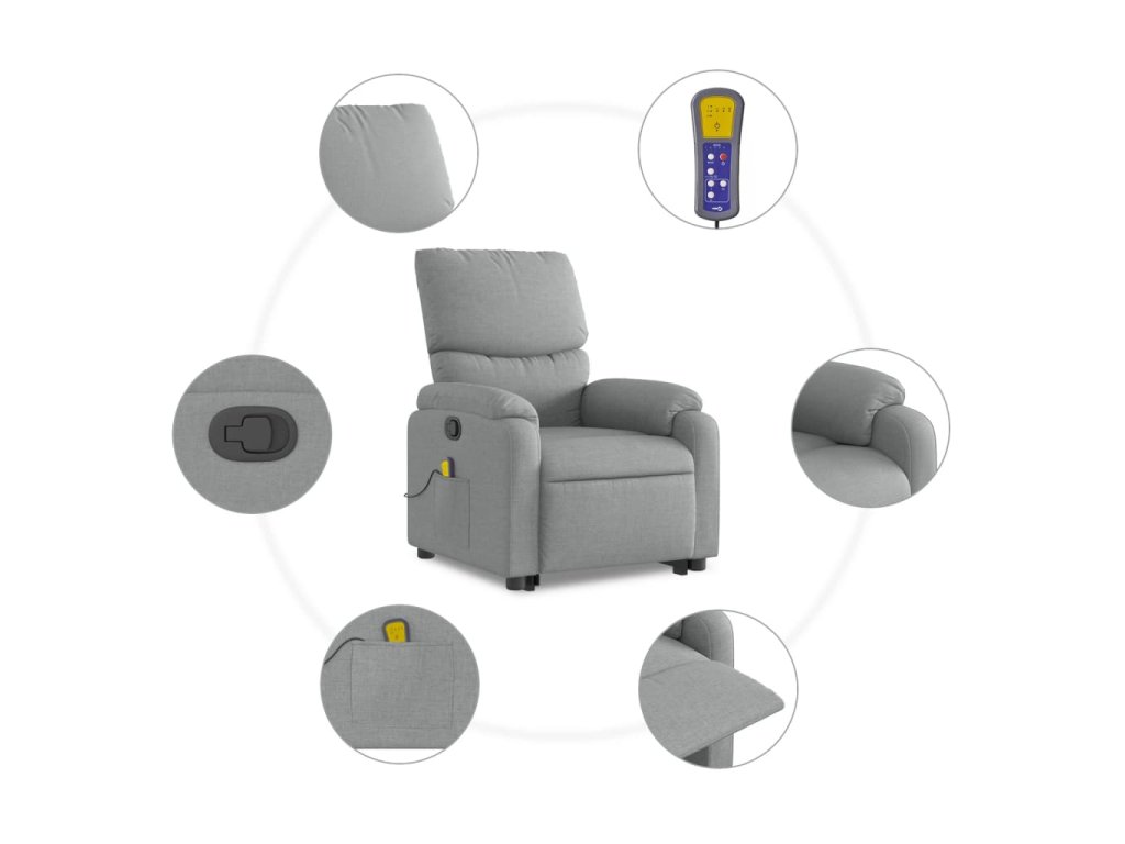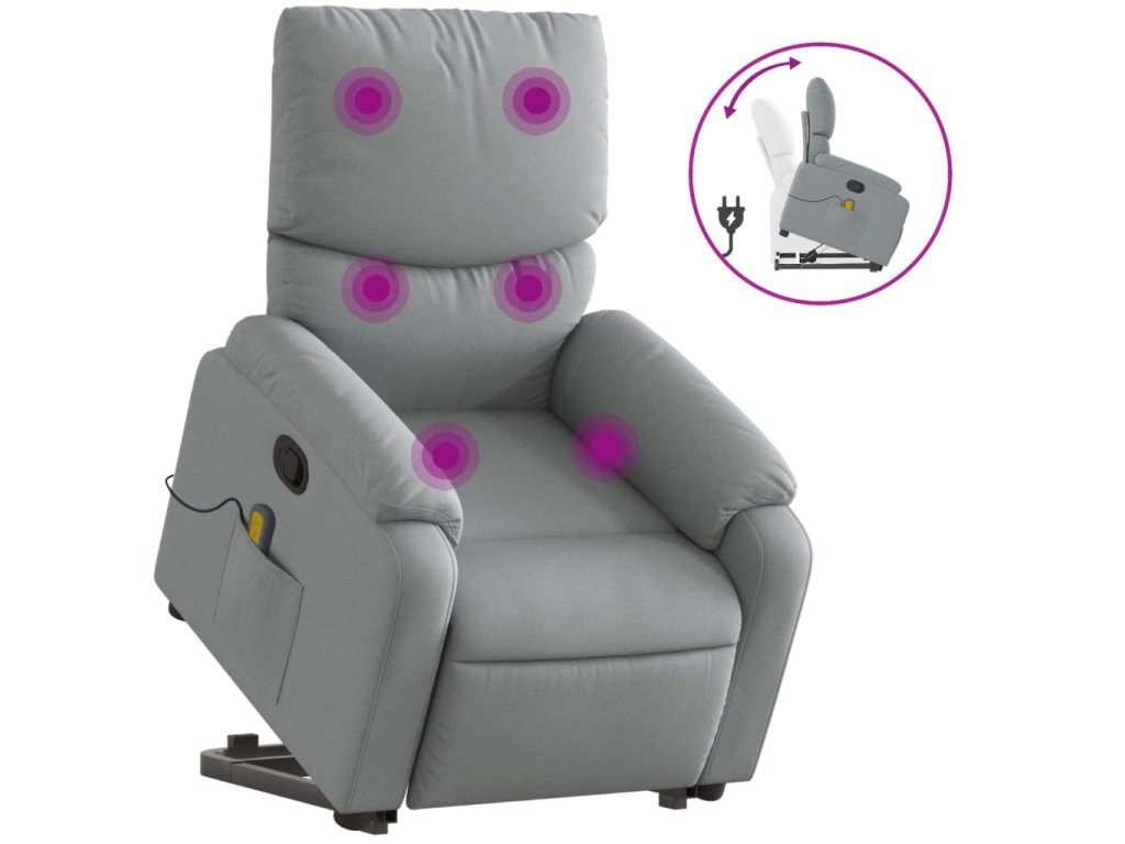 vidaXL Zdvíhacie a sklápacie masážne kreslo bledosivé látka