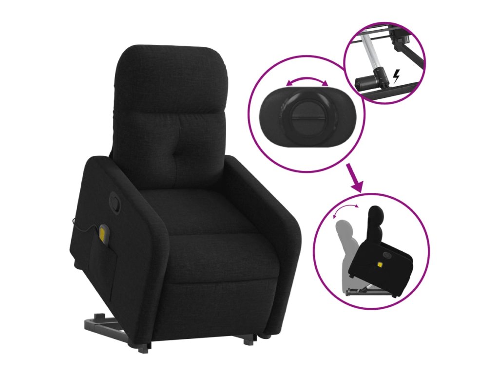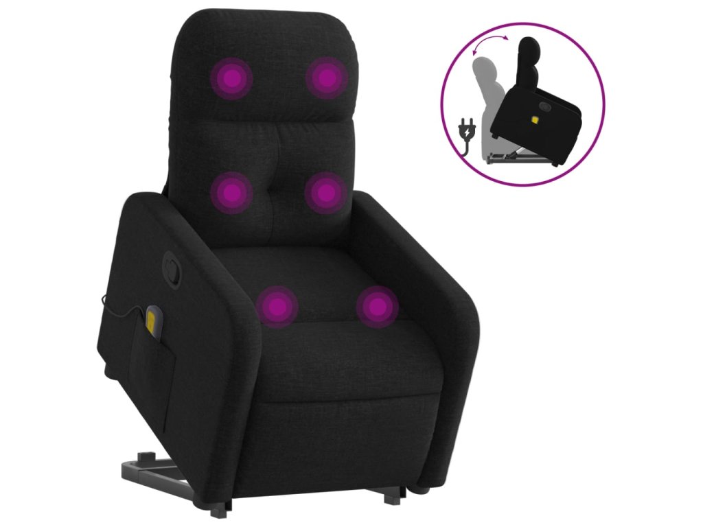 vidaXL Zdvíhacie a sklápacie masážne kreslo čierne látkové