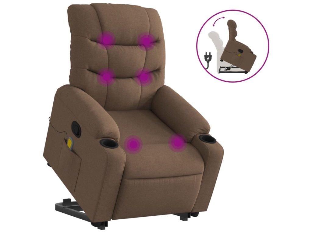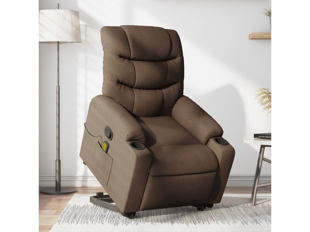 vidaXL Zdvíhacie a sklápacie masážne kreslo hnedé látka