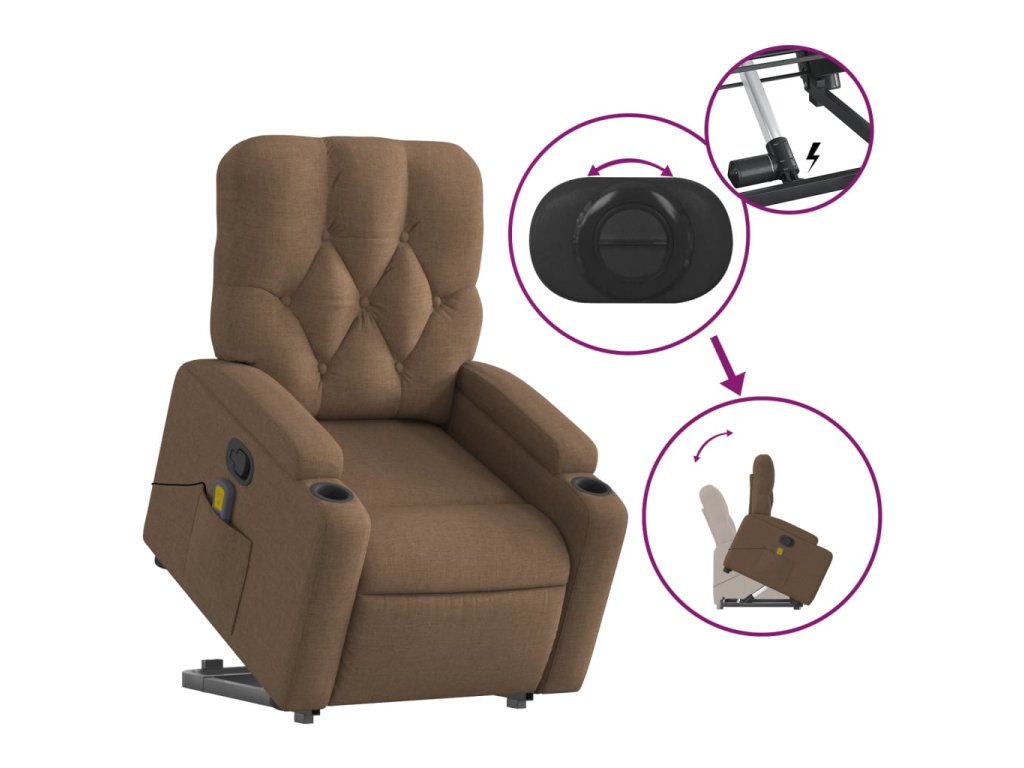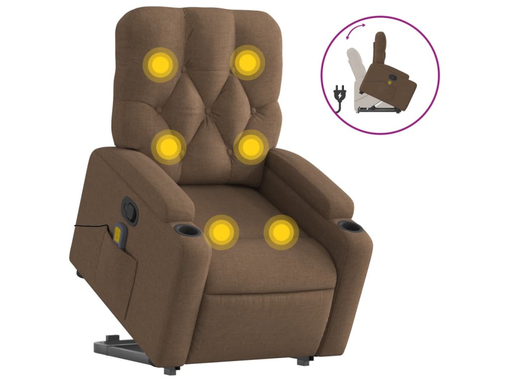 vidaXL Zdvíhacie a sklápacie masážne kreslo hnedé látka