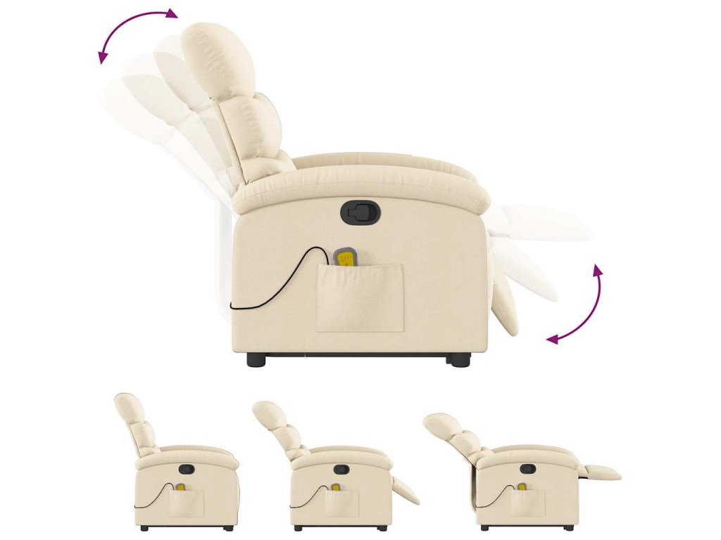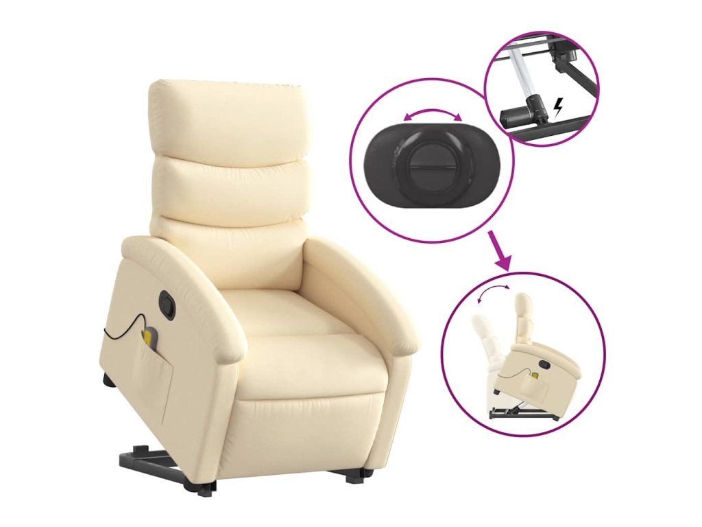 vidaXL Zdvíhacie a sklápacie masážne kreslo krémové látka