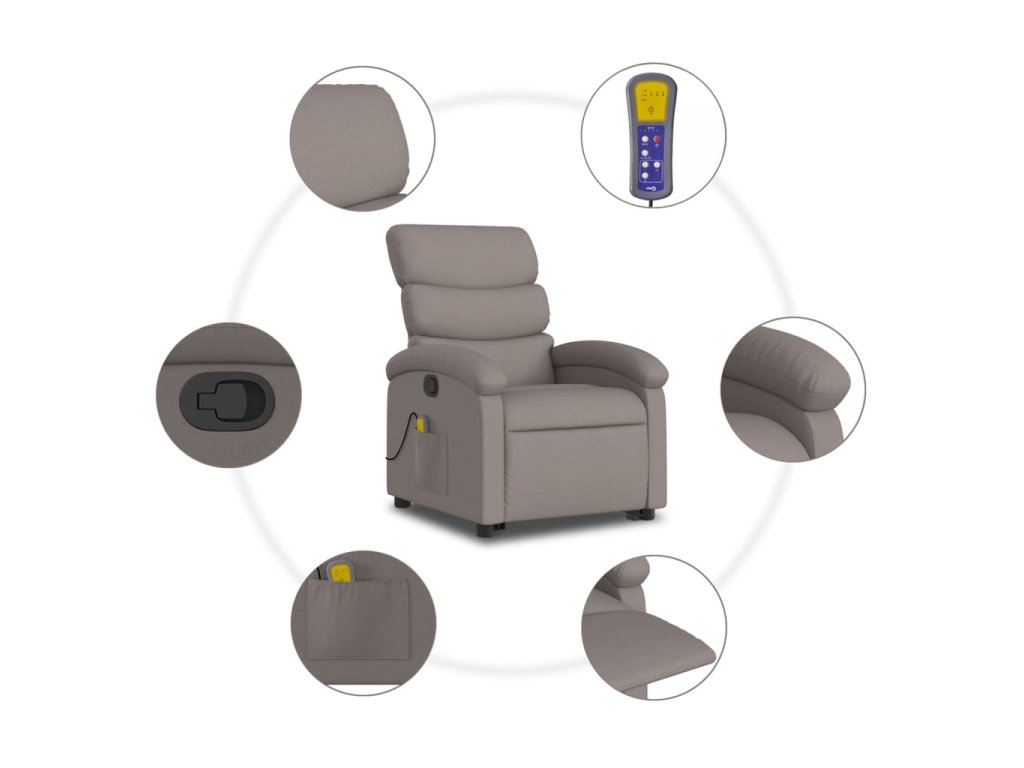 vidaXL Zdvíhacie a sklápacie masážne kreslo sivohnedé látka
