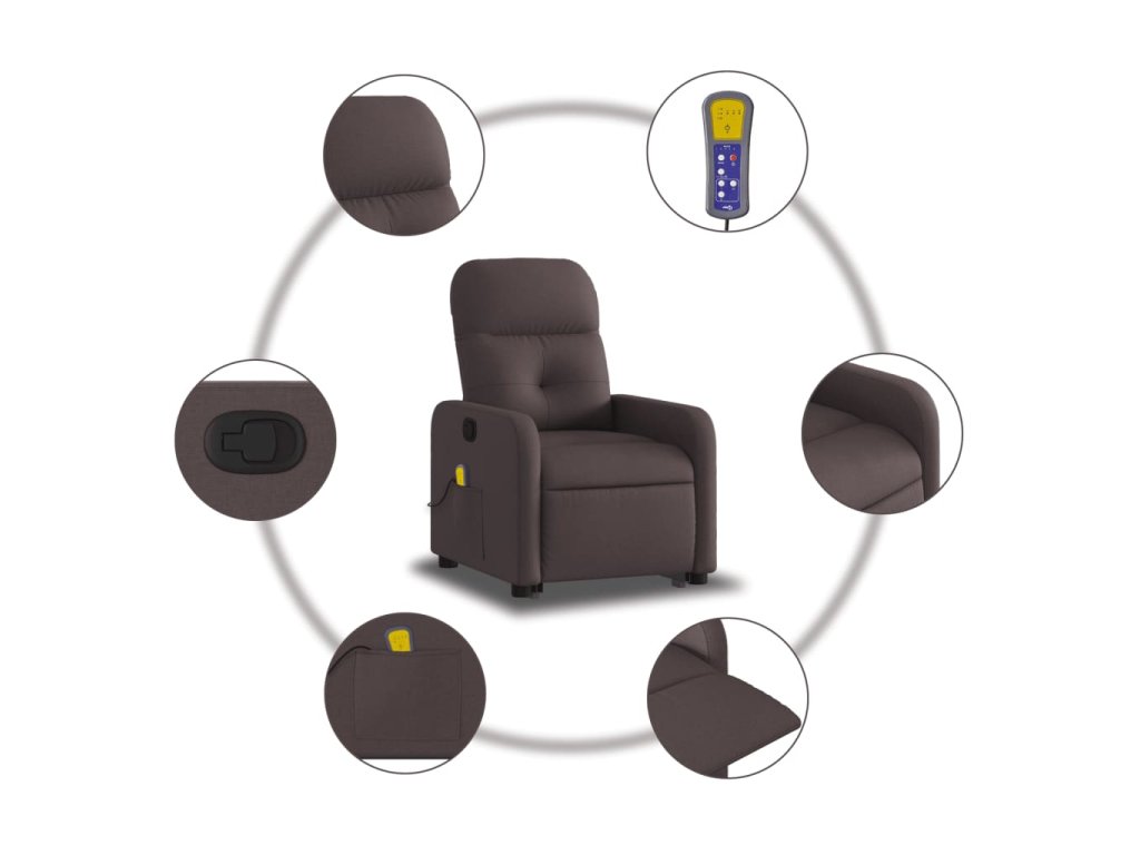 vidaXL Zdvíhacie a sklápacie masážne kreslo tmavohnedé látkové