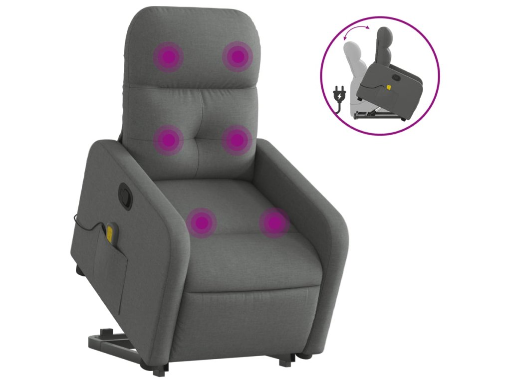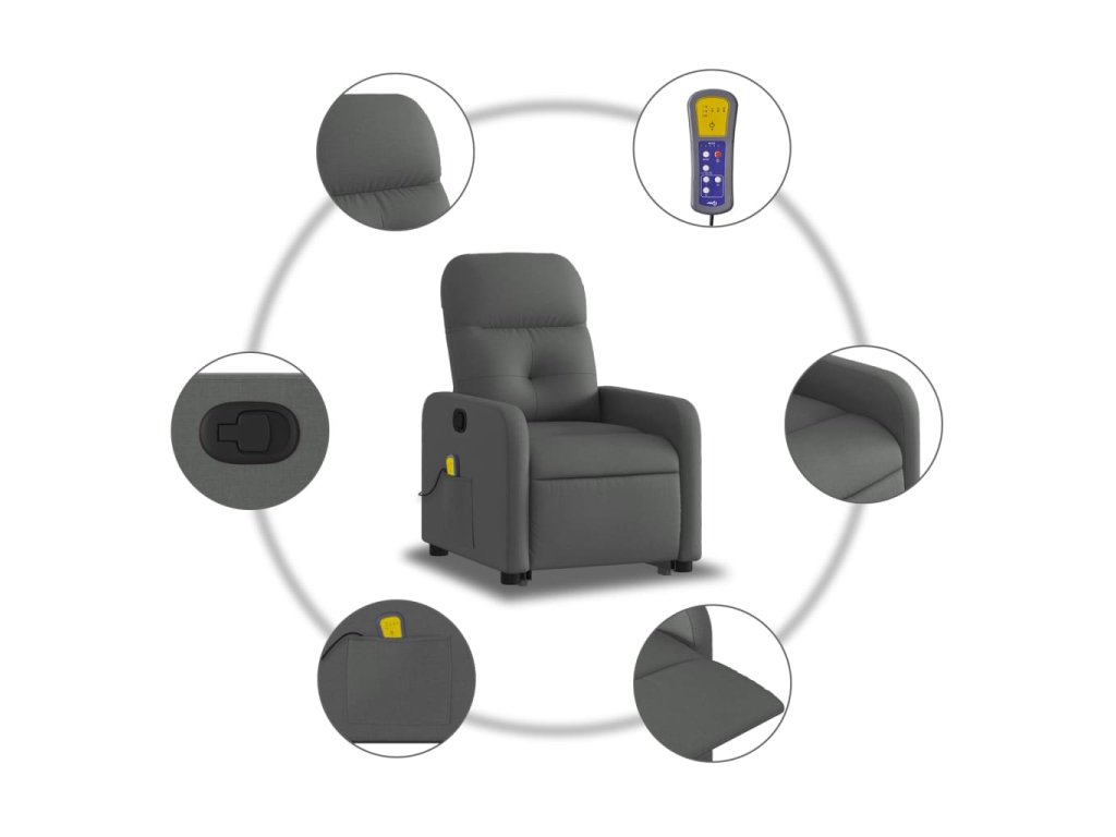 vidaXL Zdvíhacie a sklápacie masážne kreslo tmavosivé látka