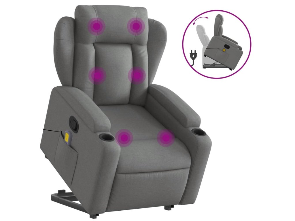 vidaXL Zdvíhacie a sklápacie masážne kreslo tmavosivé látka