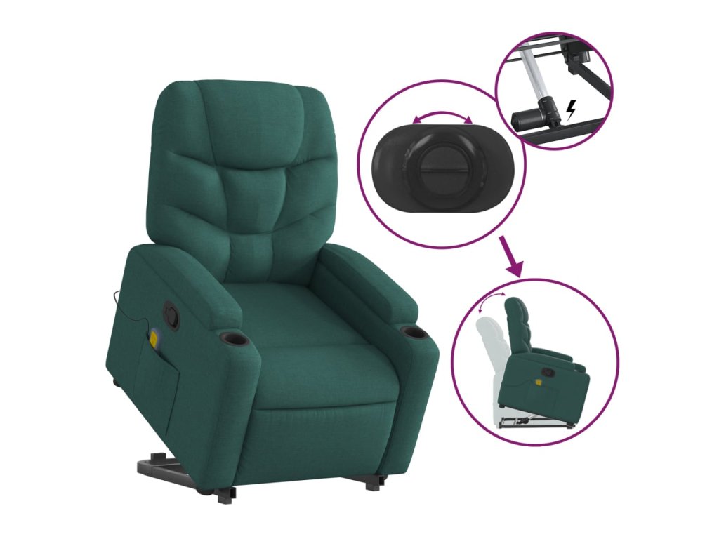 vidaXL Zdvíhacie a sklápacie masážne kreslo tmavozelené látka