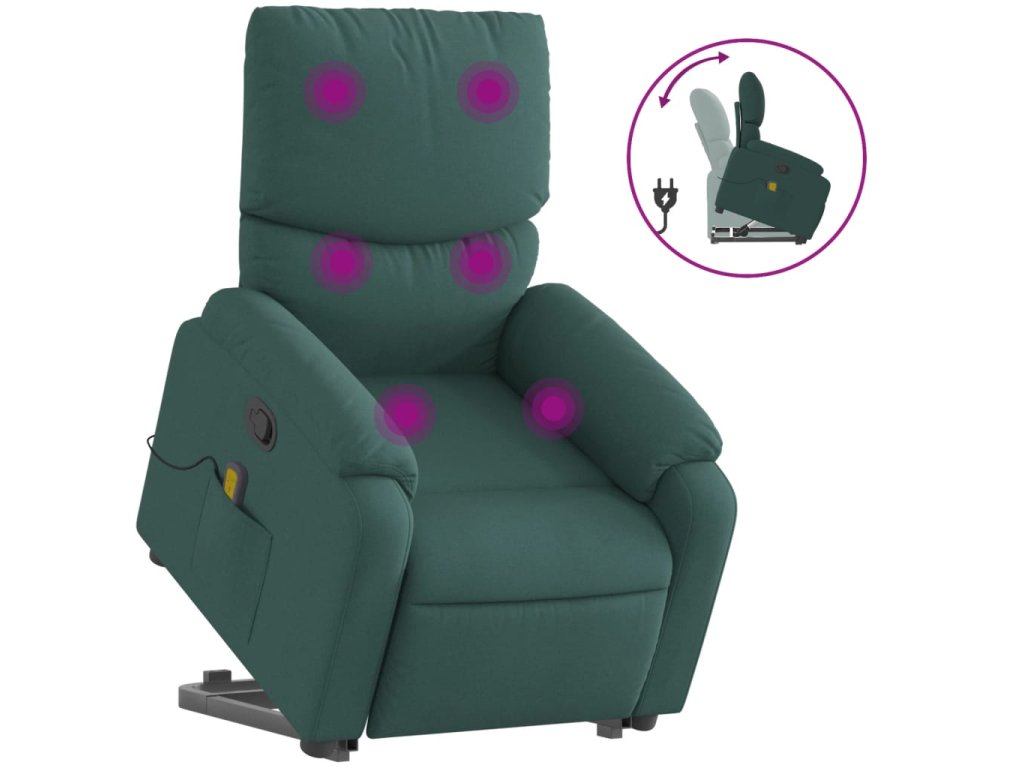 vidaXL Zdvíhacie a sklápacie masážne kreslo tmavozelené látka
