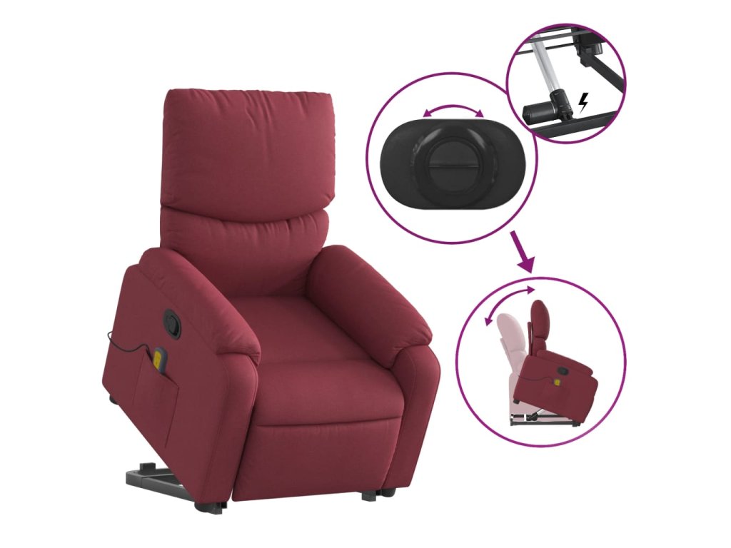 vidaXL Zdvíhacie a sklápacie masážne kreslo vínovo-červené látka