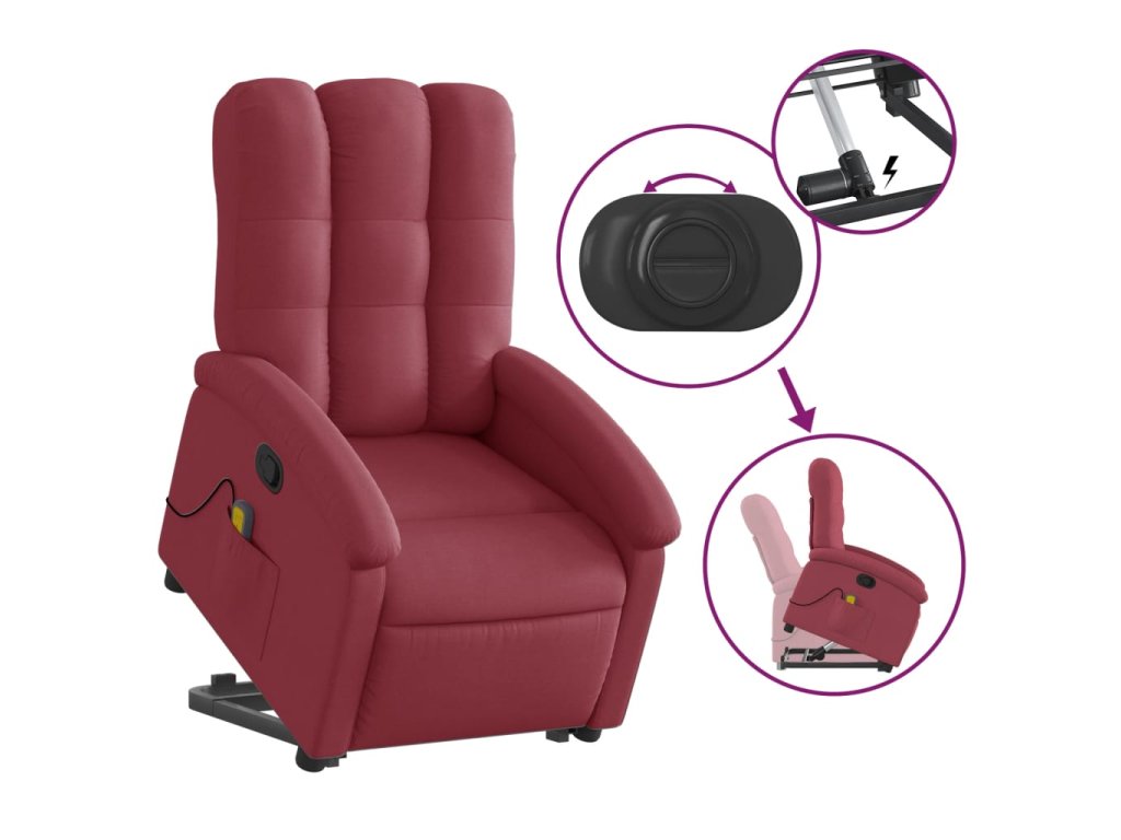 vidaXL Zdvíhacie a sklápacie masážne kreslo vínovo-červené látka