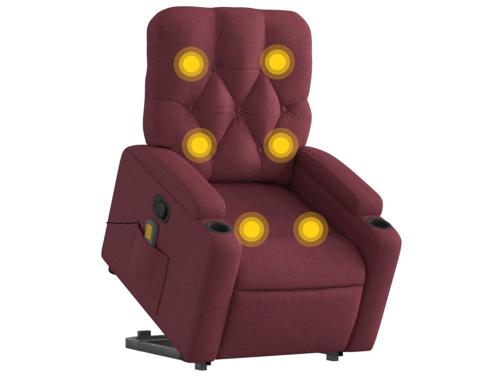 vidaXL Zdvíhacie a sklápacie masážne kreslo vínovo-červené látka