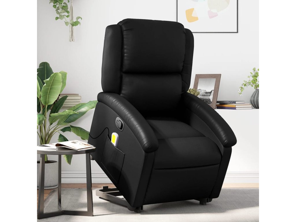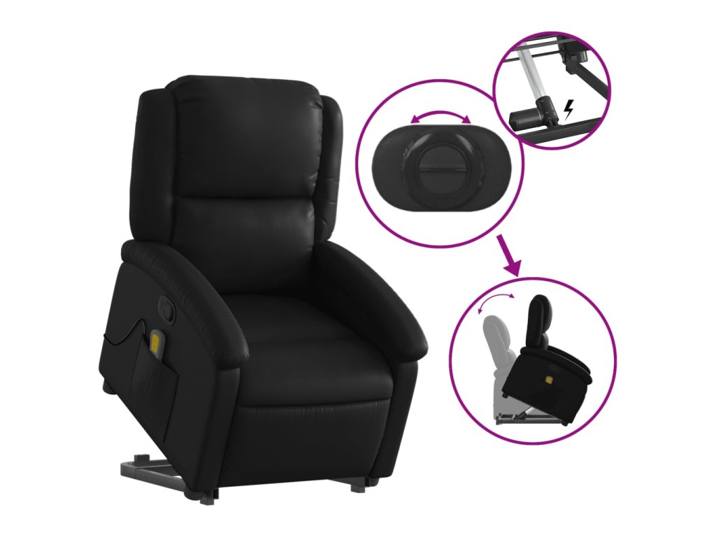 vidaXL Zdvíhacie masážne sklápacie kreslo čierne umelá koža