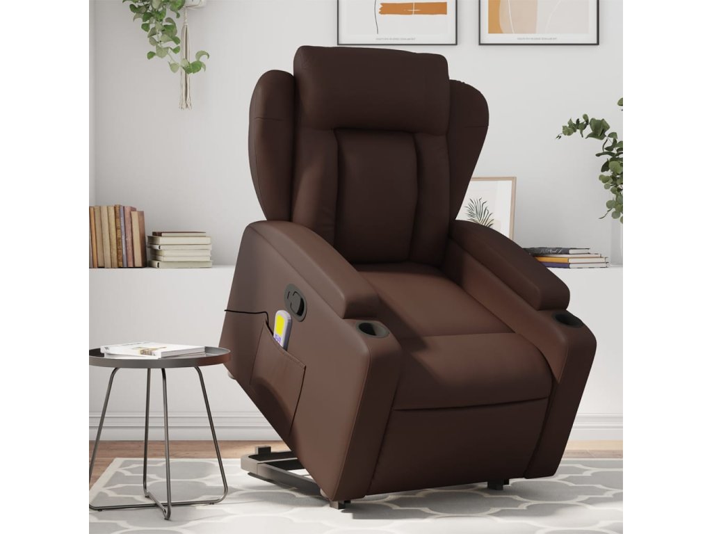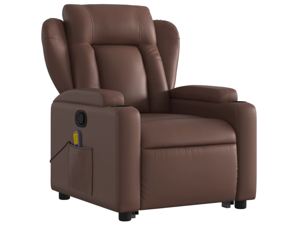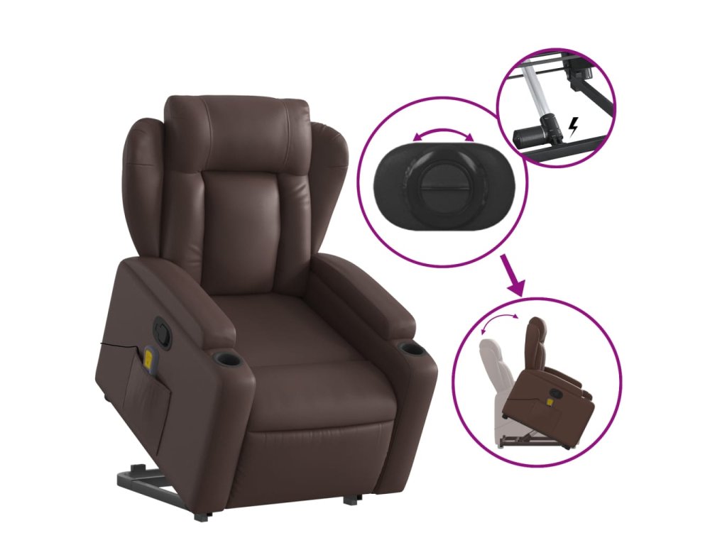 vidaXL Zdvíhacie masážne sklápacie kreslo hnedé umelá koža