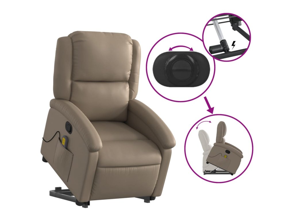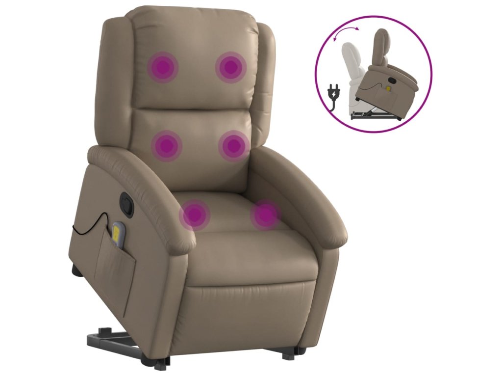 vidaXL Zdvíhacie masážne sklápacie kreslo kapučínové umelá koža
