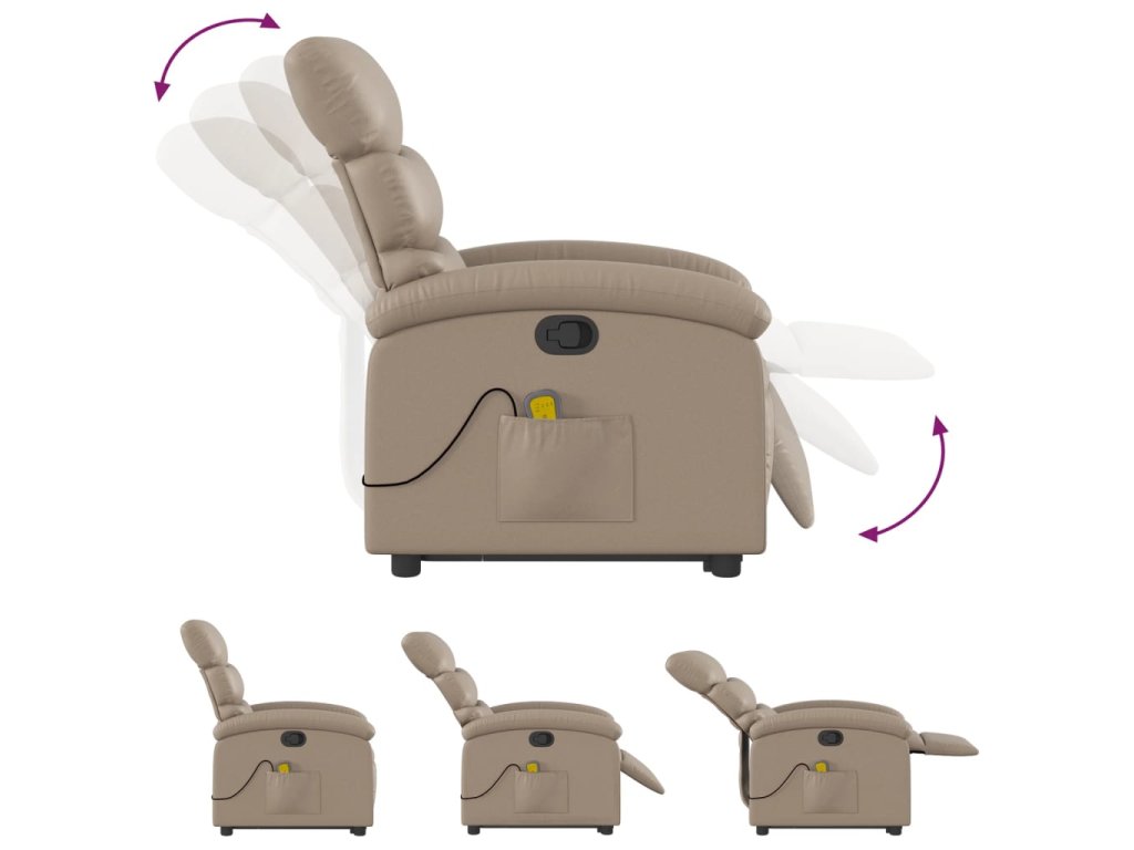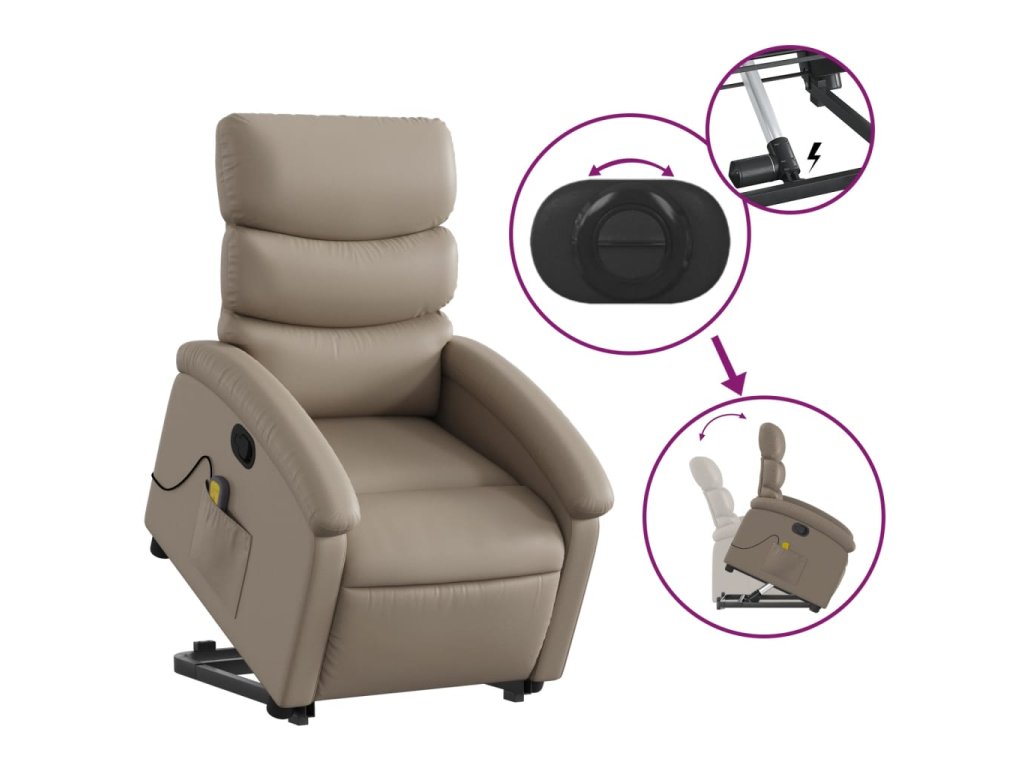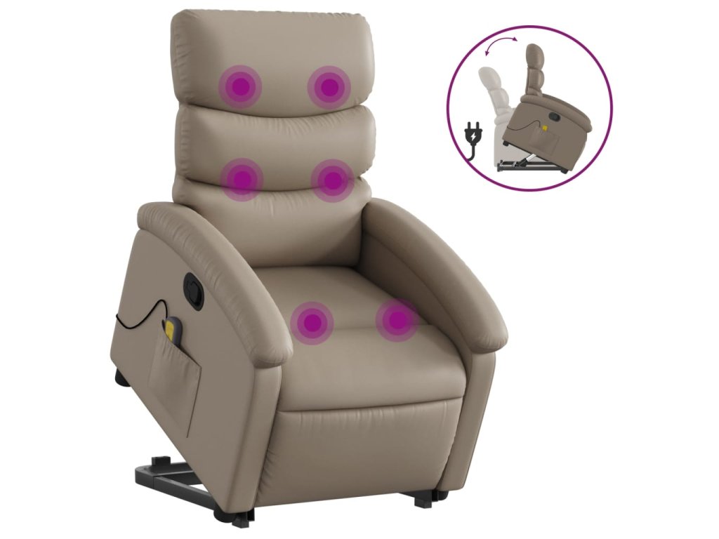 vidaXL Zdvíhacie masážne sklápacie kreslo kapučínové umelá koža