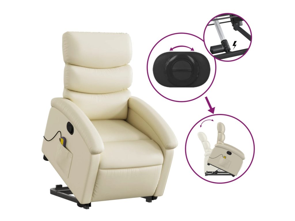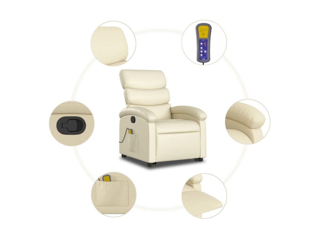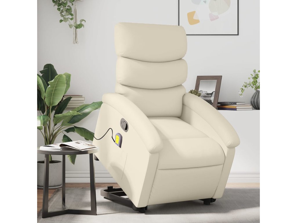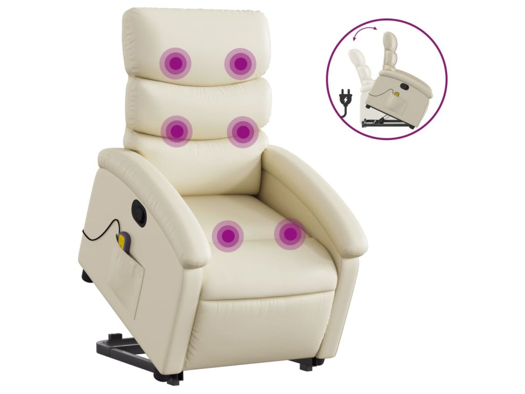 vidaXL Zdvíhacie masážne sklápacie kreslo krémové umelá koža