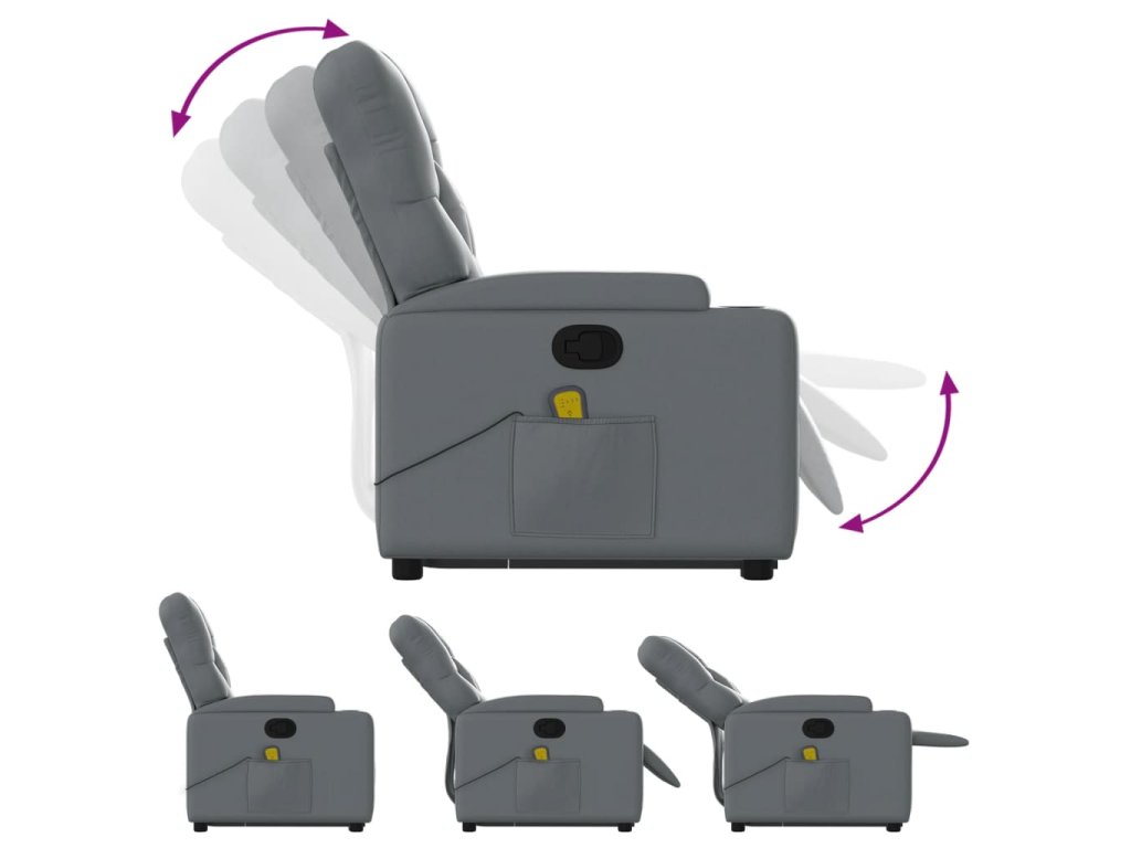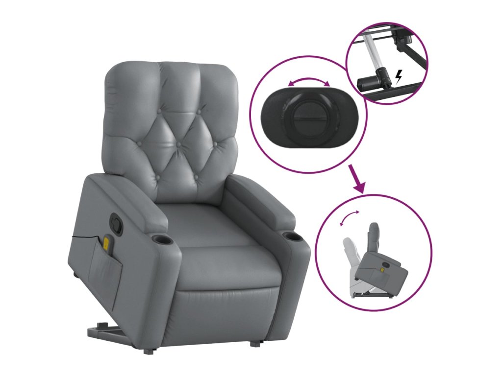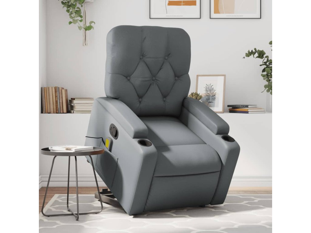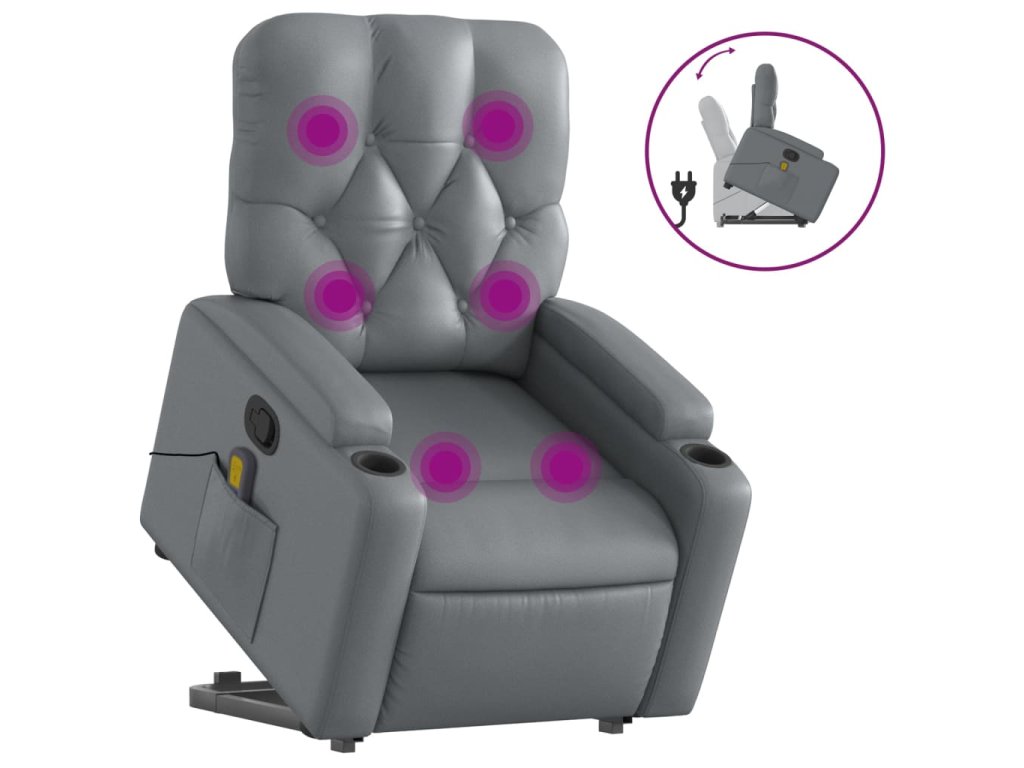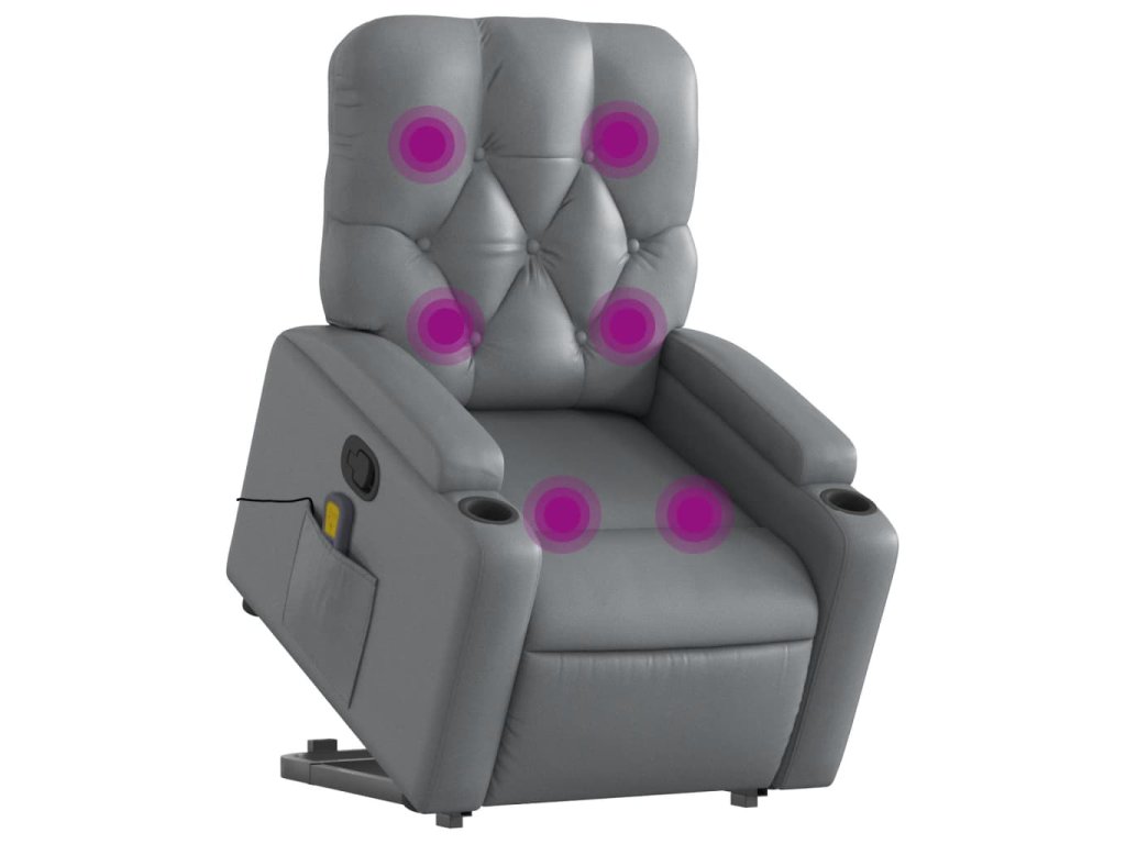 vidaXL Zdvíhacie masážne sklápacie kreslo sivé umelá koža