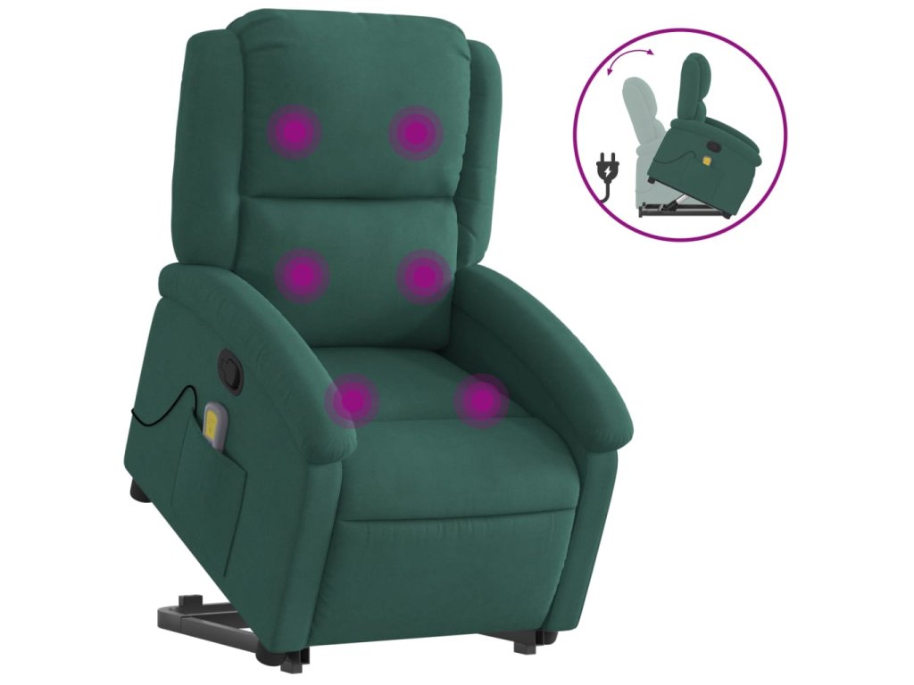 VidaXL Zdvíhacie masážne sklápacie kreslo tmavozelené zamatové
