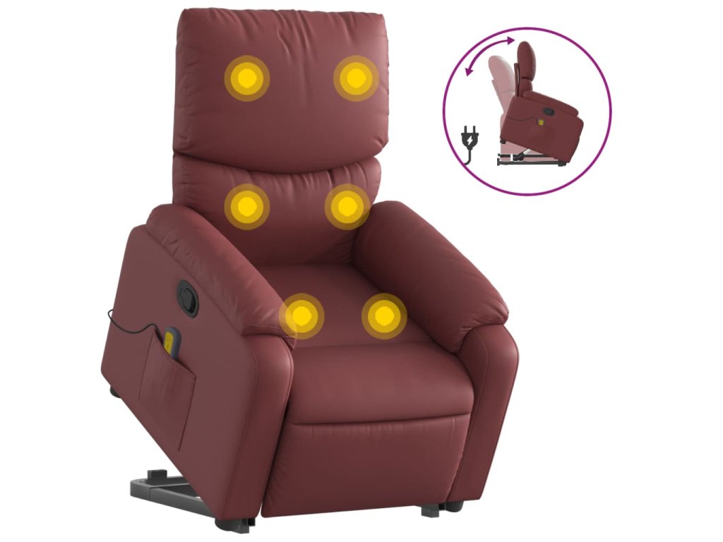 vidaXL Zdvíhacie masážne sklápacie kreslo vínovočervené umelá koža