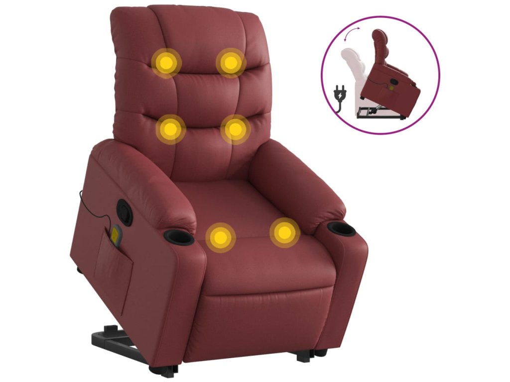 vidaXL Zdvíhacie masážne sklápacie kreslo vínovočervené umelá koža